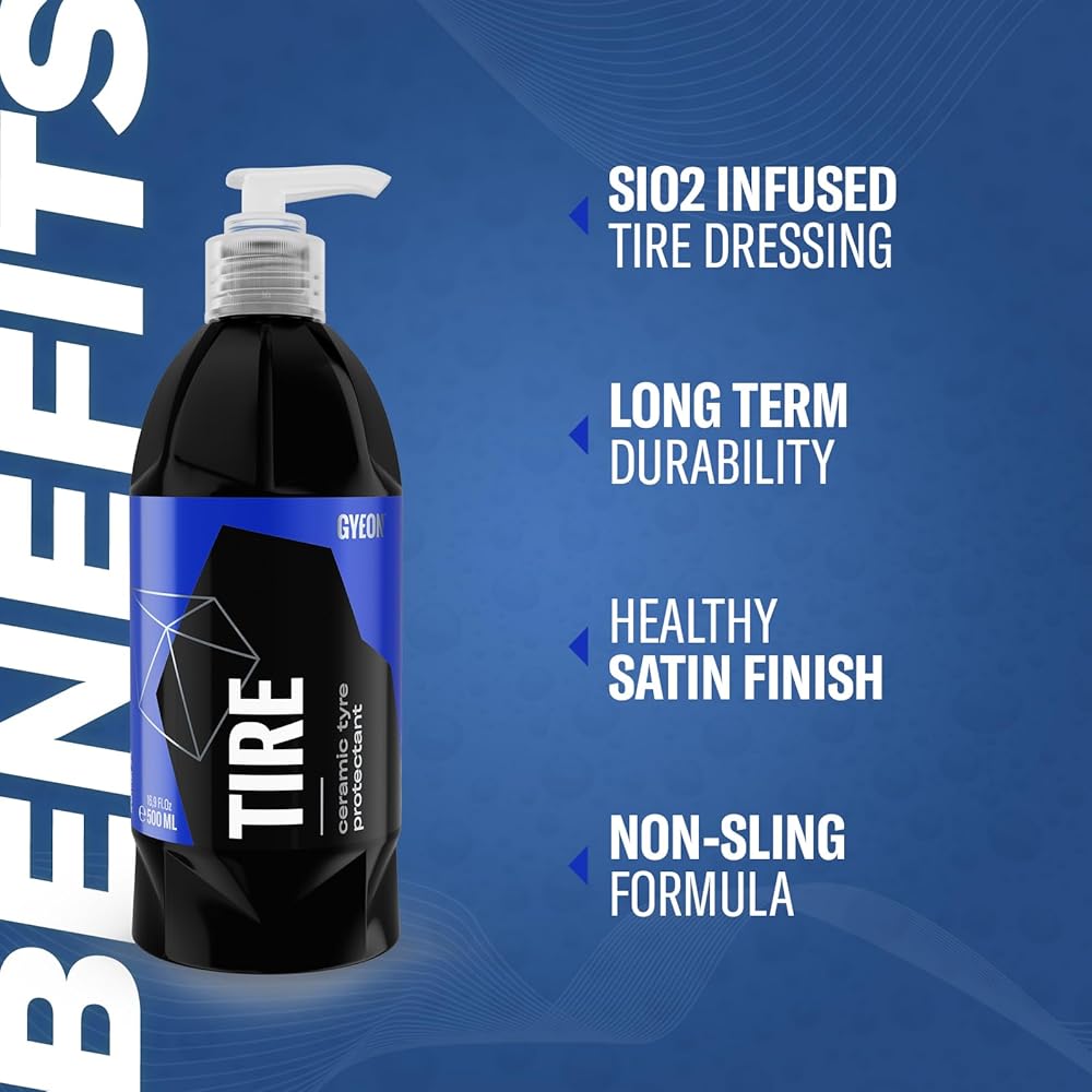 سهل الاستخدام - تأكد من تنظيف الإطار باستخدام منظف الإطارات كيو 2 ام واتركه يجف. افركي كمية صغيرة من المنتج على السطح واتركه يجف. نصيحة: لإطالة متانة إطار Q²، قم بتسخين جدار الإطار السطحي باستخدام مسدس حراري. سيفتح ذلك المسام الدقيقة للمطاط ويسمح للمنتج بالنقع. والنتيجة هي لمسة نهائية غير لامعة ومتانة ممتدة.