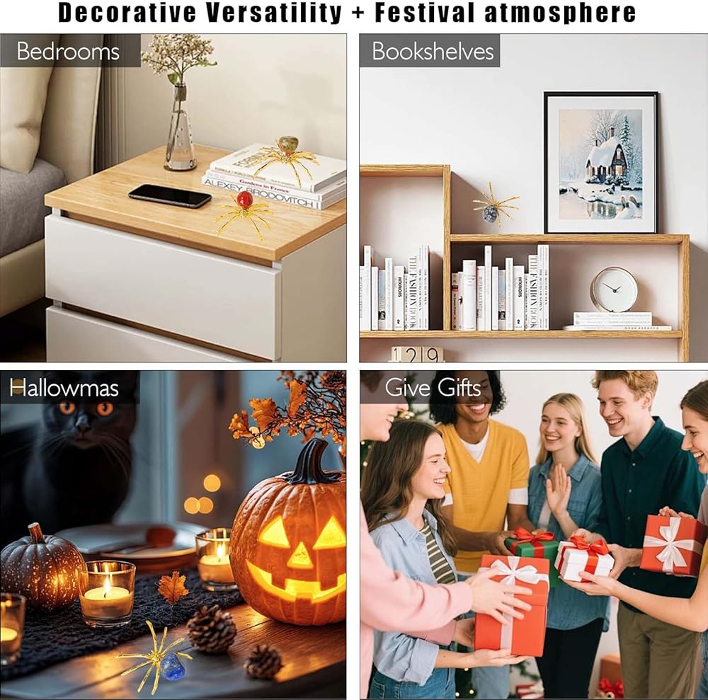 الديكور عنكبوت الكريستال الطبيعي مع تصميم جديد يبدو حقيقيا. تزيين كل ركن من أركان منزلك والحديقة والحفلة والمنزل مع العناكب الهالوين. يمكن أيضًا دمج العنكبوت الكريستال مع ديكورات أخرى لخلق جو احتفالي.