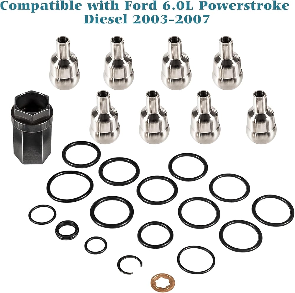 أداة إصلاح الكرة ذات الضغط العالي للزيت O-Rings Tube-مقبس Nipple Cuck & Nipple Coups & Injector Seals Kit متوافقة مع Ford 6.0L Powerstroke Diesel 2003-2007