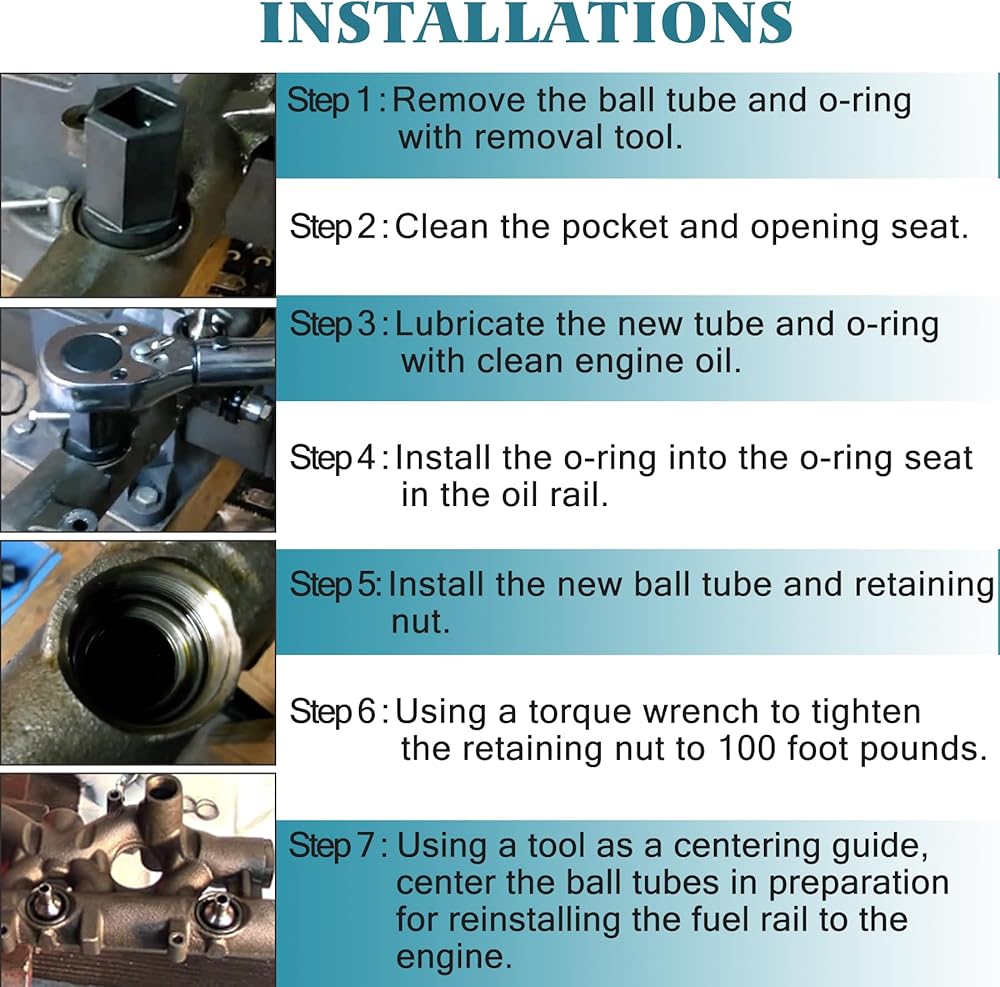 KITS INCLUDES: This tools set includes everything needed to rebuild your oil rail with tool and ball tubes. 1pcs nipple cup socket (installed & removal tool); 8pcs nipple cups (ball tube); 16pcs o-ring seals; 9pcs injector o-ring seals