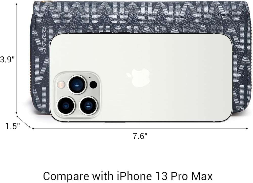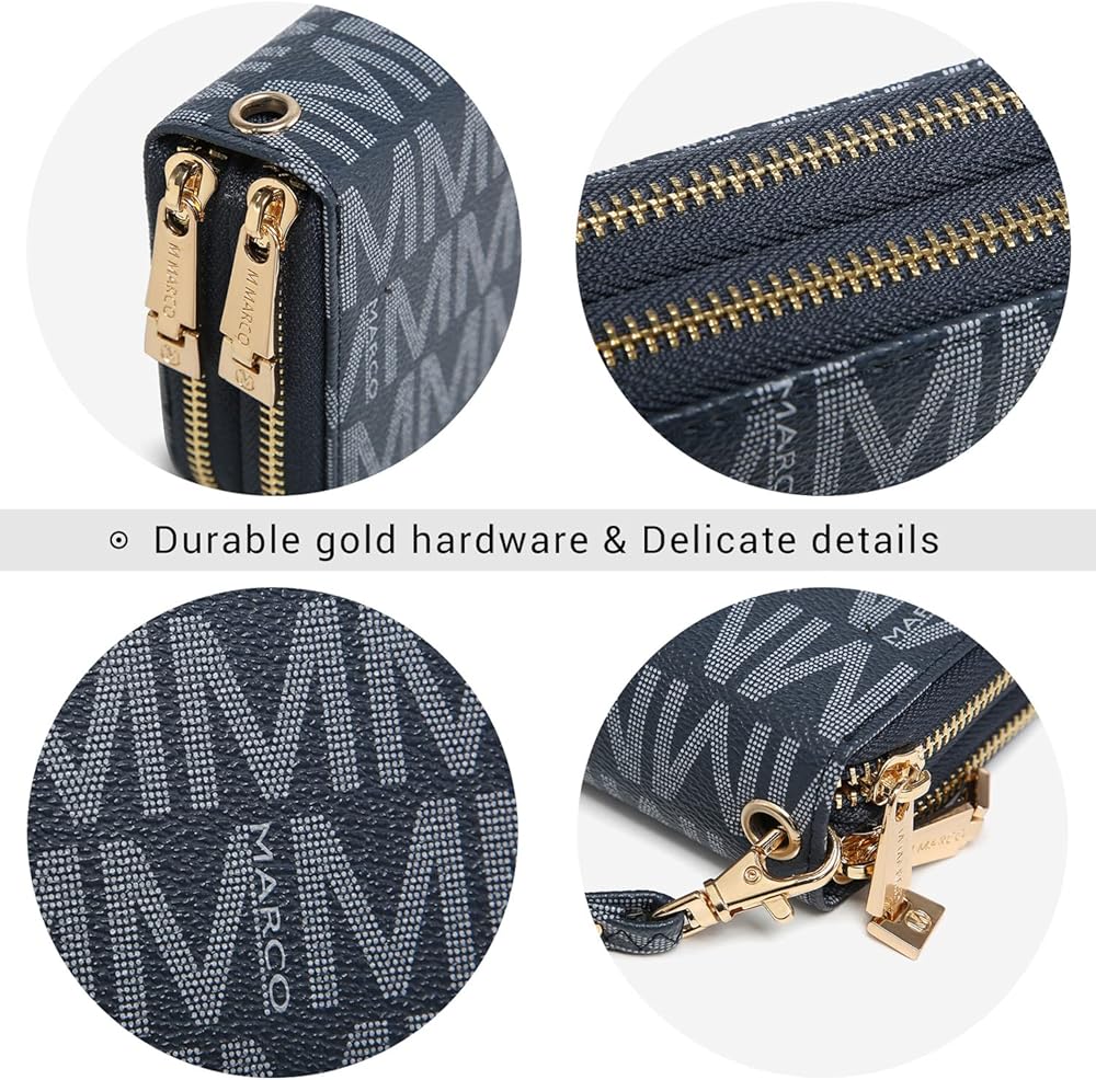 مجهزة بإغلاق سحاب مزدوج واثنين من المقصورات الرئيسية. يحتوي على 8 فتحات بطاقات ، وجيوب كبيرة ، وحصائر دفتر شيكات ، وجيب سحاب داخلي يمكنه عقد معظم الهواتف الذكية الكبيرة.