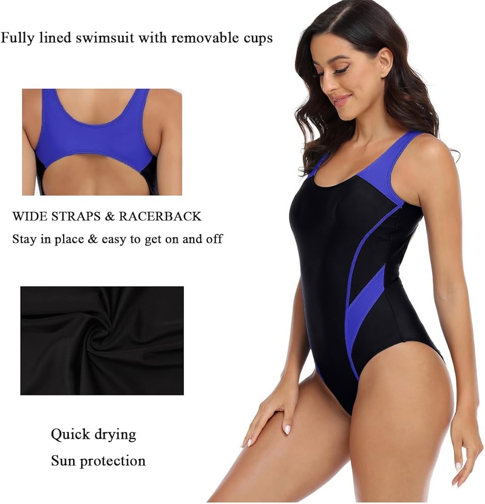نساء من قطعة واحدة للسباحة التي تتميز بأشرطة كتف واسعة تساعد على تقليل الضغط للكتف ، يسمح Racer Back بمجموعة كاملة من حركة الذراع