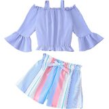 التصميم : تجمع ملابس الأطفال الأنيقة هذه بين قمة عصرية خارج الكتف مع شورتات الخصر الورقية. يضمن حزام الخصر المريح الراحة طوال اليوم ، مما يجعله أمرًا لا بد منه في أزياء الفتيات للفتيات اللواتي يرغبن في البقاء عصريًا ونشطًا
