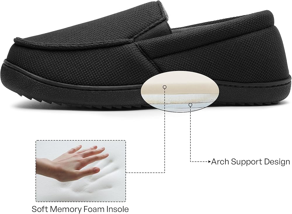 أحذية المنزل في الداخل للرجال: من السهل وضع أو إقلاع الانزلاق الدافئ مع النطاق المرن على تصميم اللسان أو الإقلاع ، لتحويله بسرعة بين الداخل والخارج. يمكن أن تغطي النعال الكعب المغلقة قدميك على الإطلاق والحفاظ على أقدام دافئة