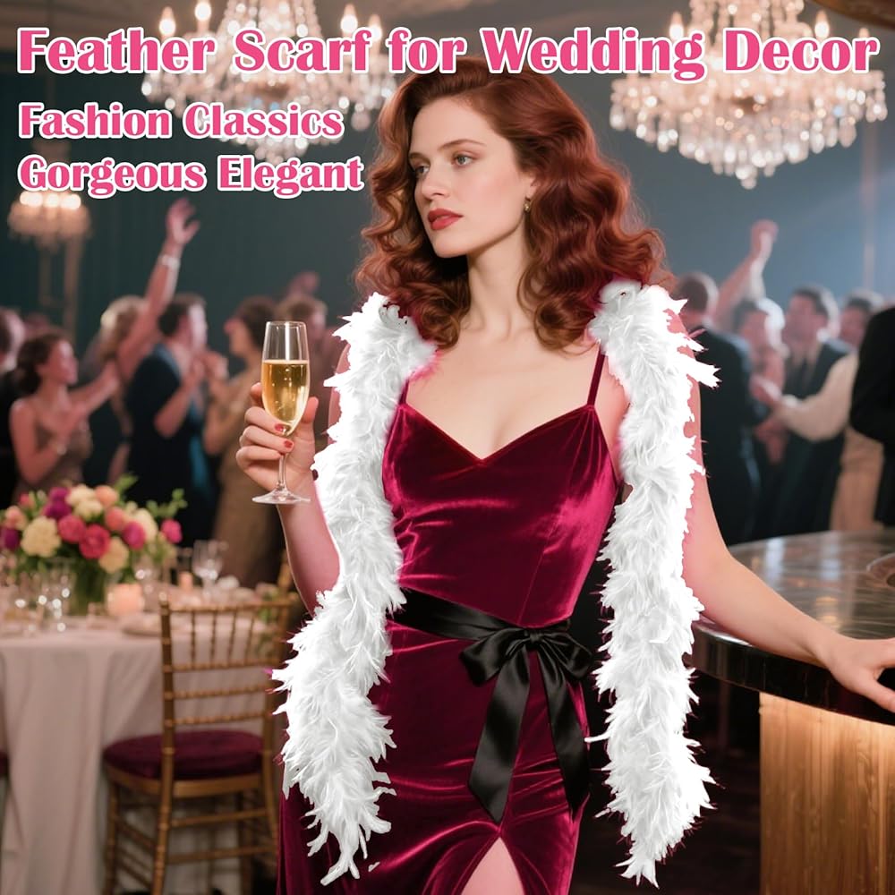 الملحقات الواسعة: وشاح الريش هو ملحق كبير للحفلة. يعد وشاح الريشة الرقيق وسيلة رائعة لإضافة أجواء احتفالية وسحر لحفلات عطلتك ، مثل الحفلات الموسيقية ، وفساتين عشاء الزفاف ، والعروض المسرحية ، والكرنفال ، والعديد من الزخارف الحزبية.