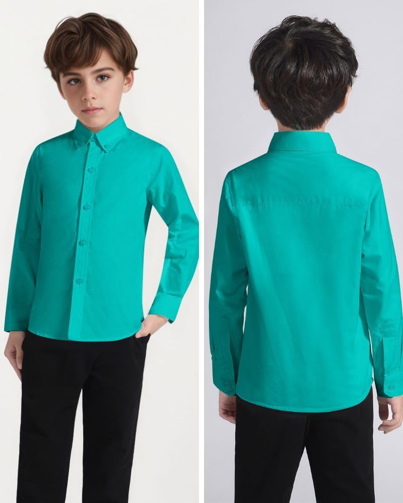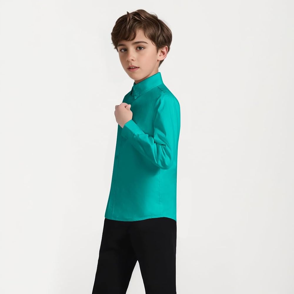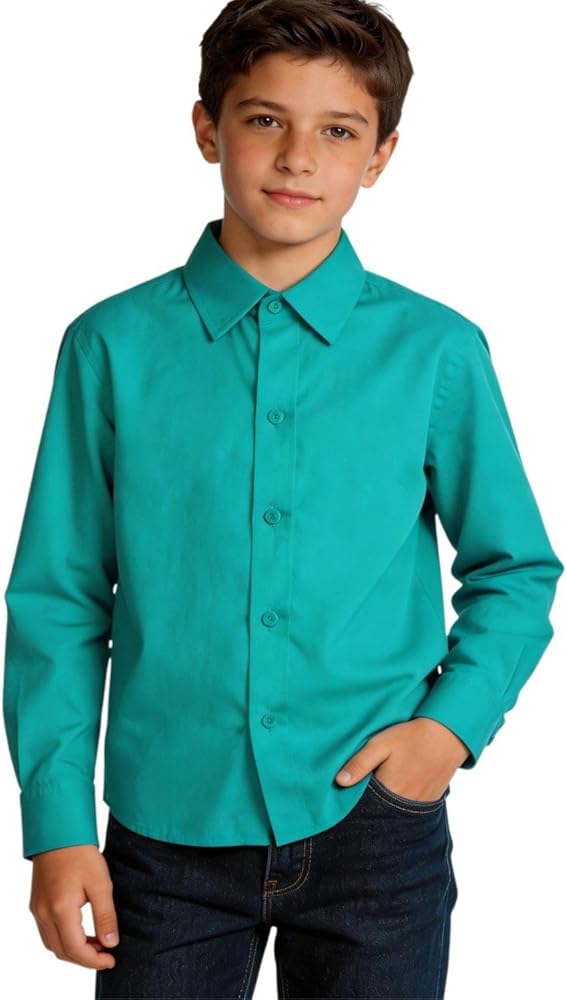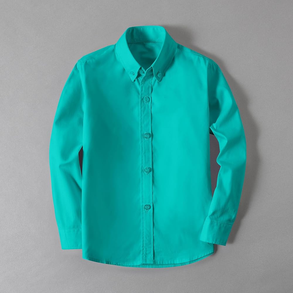 قميص اللباس النحيف الأكمام الطويلة هو عنصر أساسي في خزانة الأولاد الكلاسيكية.