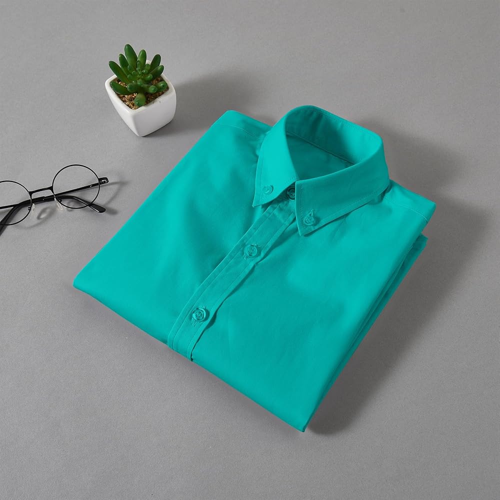 بويز أبيض زر أسفل القميص ، طوق نقطة كلاسيكية ، أزرار زر.