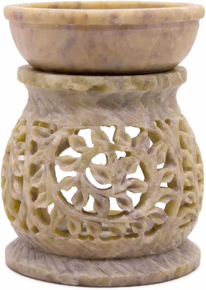 رخام الصابون شمعة رائحة الموقد | موزع الزيت | حامل ضوء الشاي | شمع الموقد- نحت الأزهار المصنوعة يدويًا للهدايا. ديكور المنزل ديكور ومكتب.