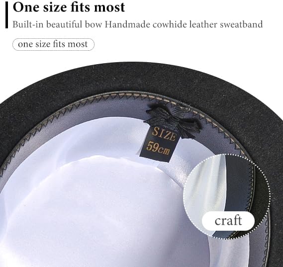 【قم بتناسب حجم رأسك】-الحفلات القبعة التي تزيين القبعة القياس: M (57 سم ، 22-3/8 ". الحجم 7-1/8) ، L (59 سم ، 23-1/4" ، الحجم 7-3/8) ، حزام قابل للتعديل في نطاق العرق ، يمكنك استخدامه لجعل الصوف فيدورا فيدورا يتناسب بشكل جيد!