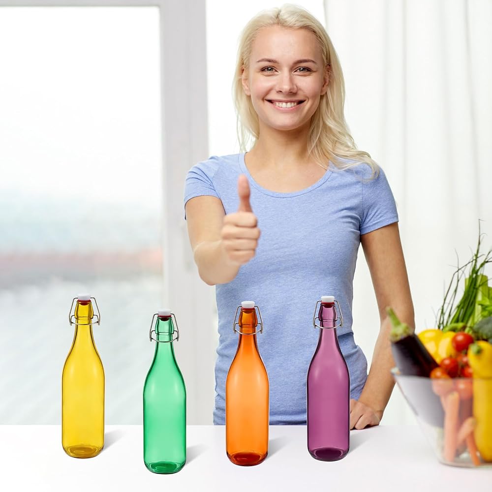 Swing top glass bottles with lids can hold water, wine, syrup, oil, juice and celery juice. They have many uses, and you can choose according to your needs. Six are enough for backup.