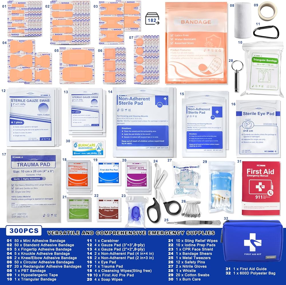 أساسيات الطوارئ الكل في واحد: تحتوي مجموعة الإسعافات الأولية المدمجة هذه على 300 مستلزمات طبية وبقاء ذات جودة متميزة بما في ذلك الضمادات ، وسادات الإعدادية بوفيدون-لودين ، والقفازات ، والملاقط ، والبطولات ، والشاش ، والمزيد. 100 ٪ خالية من اللاتكس ، آمنة للبالغين والأطفال-مثالية للتعامل مع التخفيضات البسيطة والخدوش وحالات الطوارئ الأخرى.