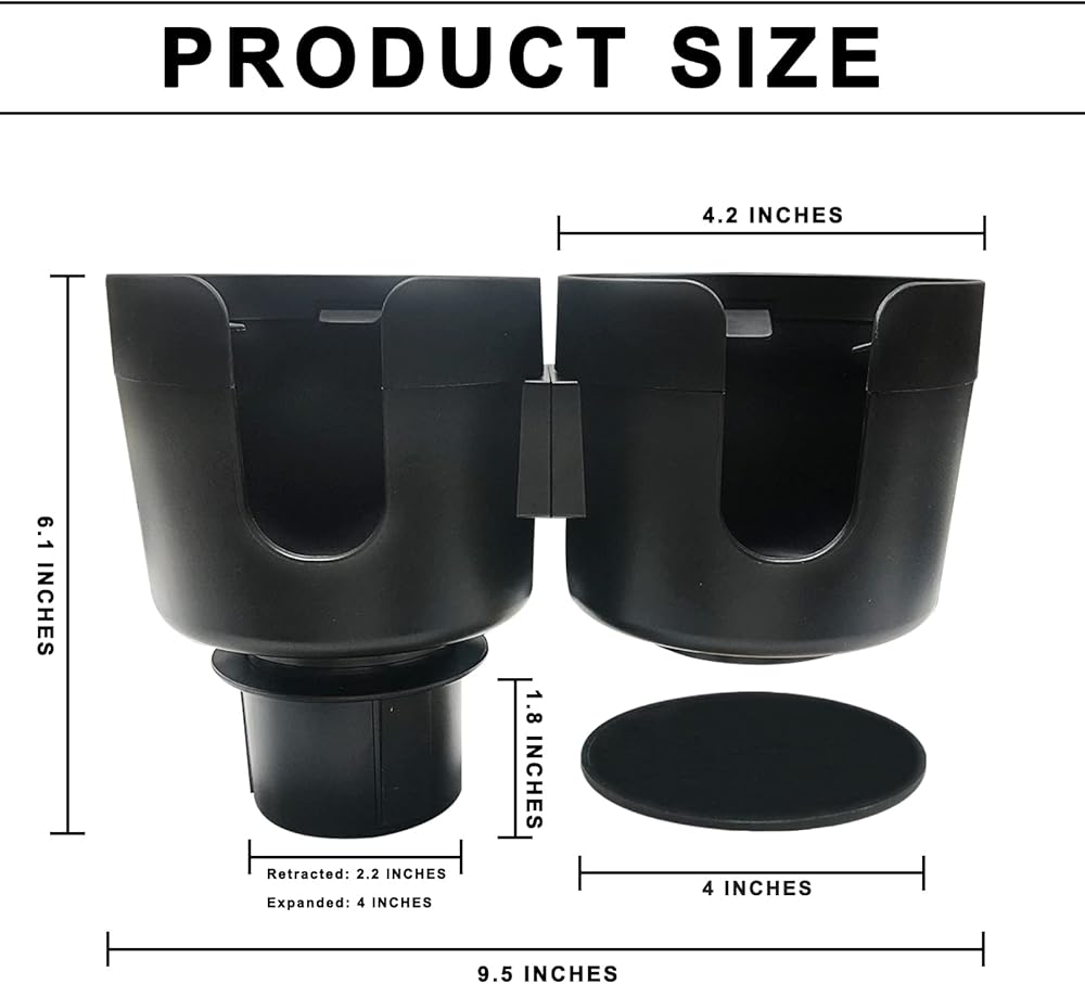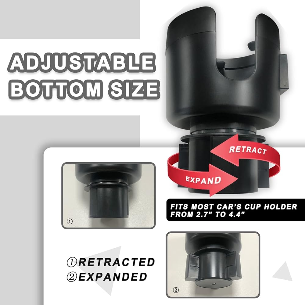 موسع حامل أكواب السيارة الخاص بنا، الإكسسوار المثالي لحامل الأكواب في سيارتك. بفضل قاعدته القابلة للتعديل، فإنه يناسب معظم حاملات أكواب السيارات بقطر من 2.7 انش إلى 4 انش، مما يجعله متوافقًا مع مجموعة واسعة من المركبات.