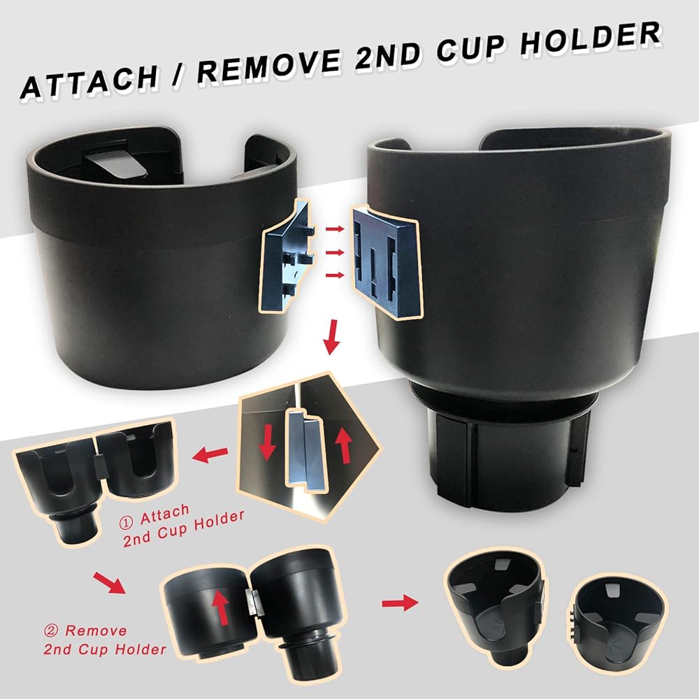 تصميم 2 في 1: يأتي موسع حامل الأكواب الخاص بنا مع حامل أكواب ثانٍ يمكن ربطه بحامل الأكواب الأساسي، مما يوفر مساحة أكبر لمشروباتك.