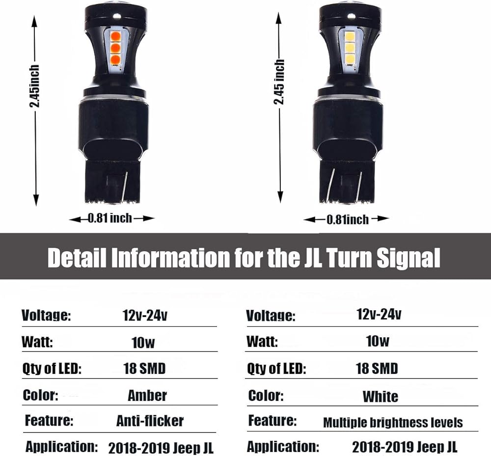 Application: Bublforst JT turn signal bulb compatible with Gladiator JT Sahara or Rubicon 2019 2020 2021 2022 2023 2024 2025. And compatible with Wrangler JL Sahara & Rubicon 2018 2019 2020 2021 2022 2023 2024 2025.