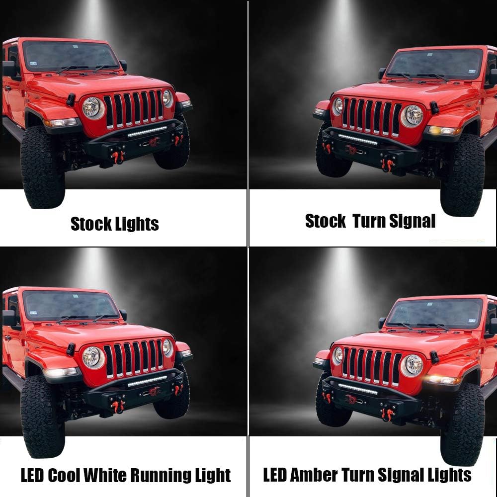 OEM Replacement: LED Turn lamp with same bulb size with the OEM stock, replace your dim, worn out factory incandescent bulbs with brighter, longer lasting front turn signal bulb and DRL kit. If your Gladiator not led package, this turn signal and running lights will be your best choose.