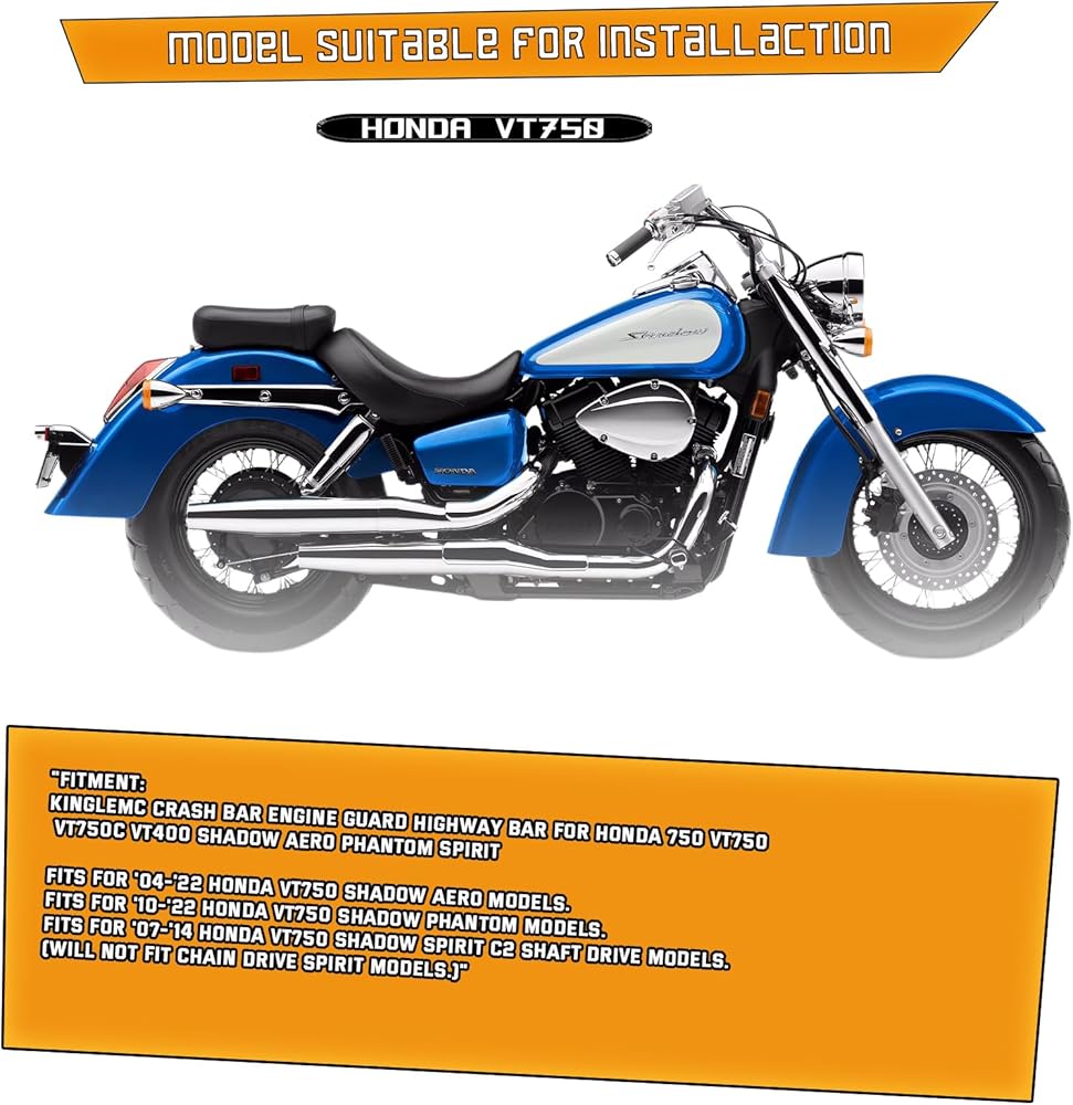 ➤fitment-حارس محرك الطريق السريع على الطريق السريع متوافق مع هوندا 750 VT750C VT400 Shadow Aero Phantom Spirit ، يناسب '04 -'24 Honda VT750 Shadow Aero Models. (لن تناسب نماذج روح القيادة.)