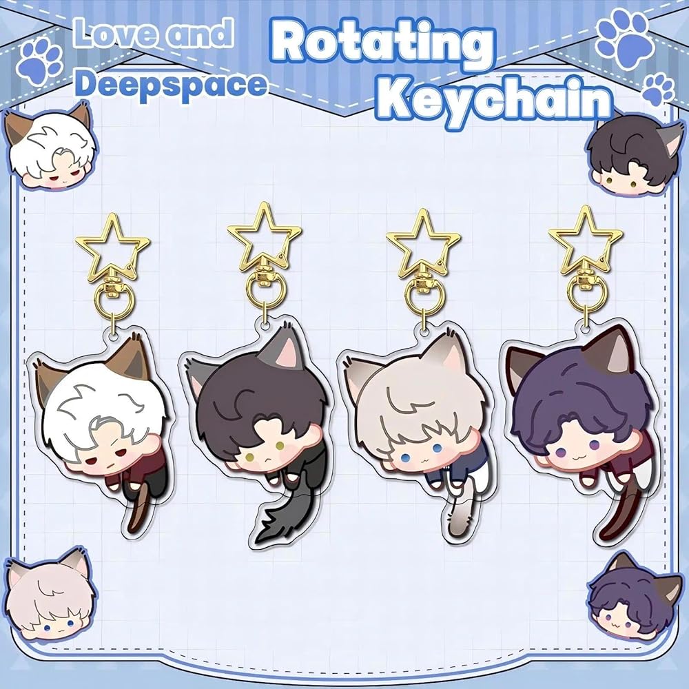 Add a playful twist to your daily carry with these charming Love and Deepspace keychains! Measuring approximately 2.36 inches tall, each keychain showcases a beloved character in chibi form—complete with a special feature: a rotating tail. This interactive design brings an extra dose of cuteness and fun, making it both a collectible and a conversation starter. Crafted from quality acrylic with vibrant, full-color printing, these keychains are durable enough for everyday use while staying light and easy to carry. Whether you're a fan of the game or just love adorable accessories, these keychains make the perfect companion for your bag, keys, or display shelf. Available in four character variants—each with its own personality and tail design. Get your favorite or collect them all!