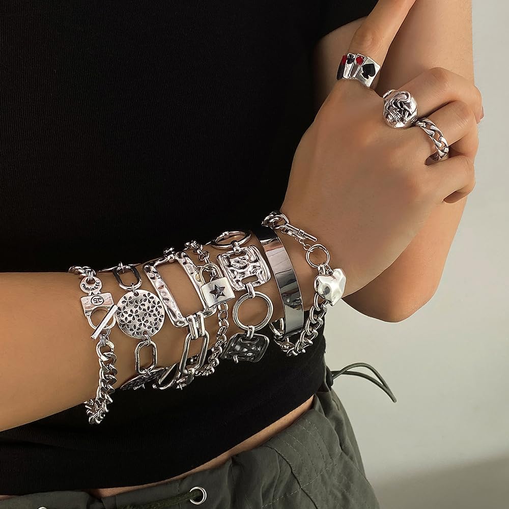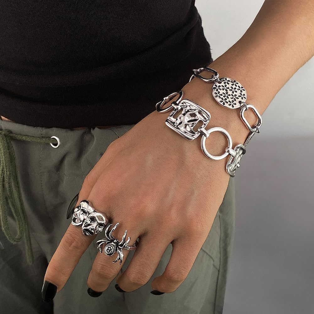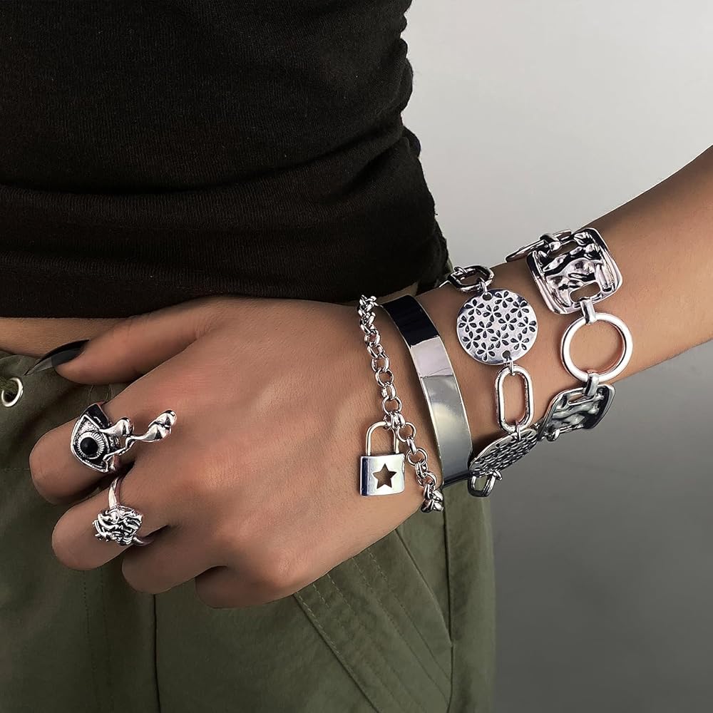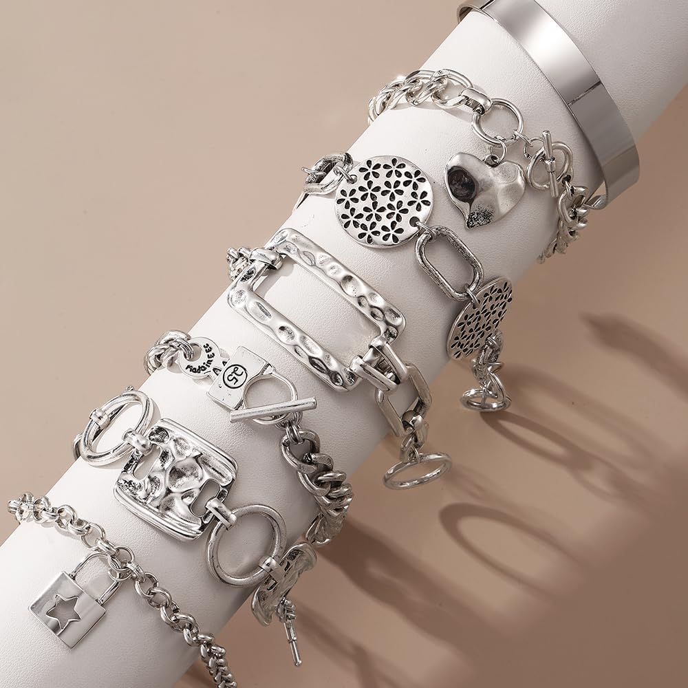 قبلة زوجة الأساور الفضية العتيقة مجموعة للنساء الرجال ، OT تبديل سوار قفل ، قفل القلب مجوفة المطبوعات أساور مكتنزة سلسلة كوبية