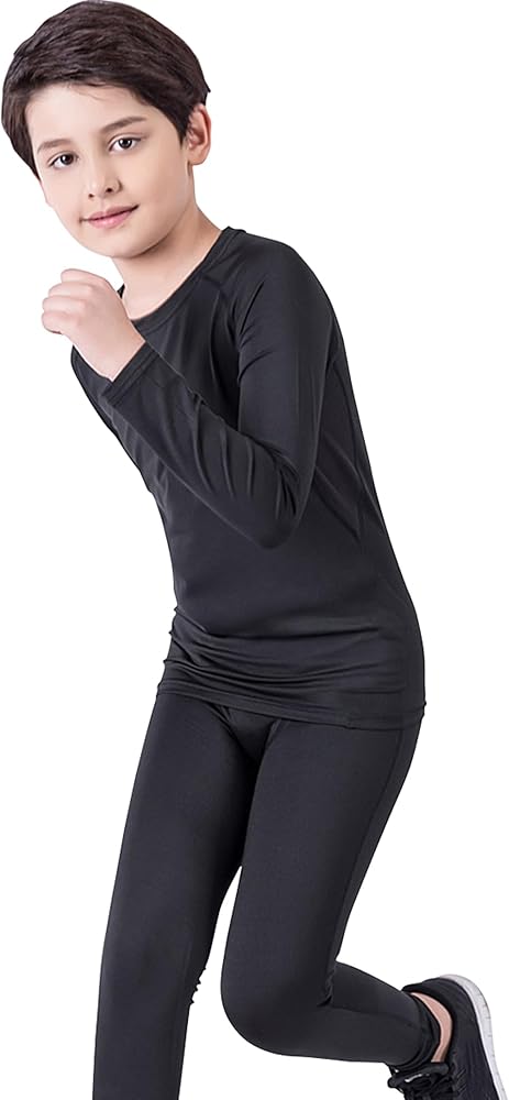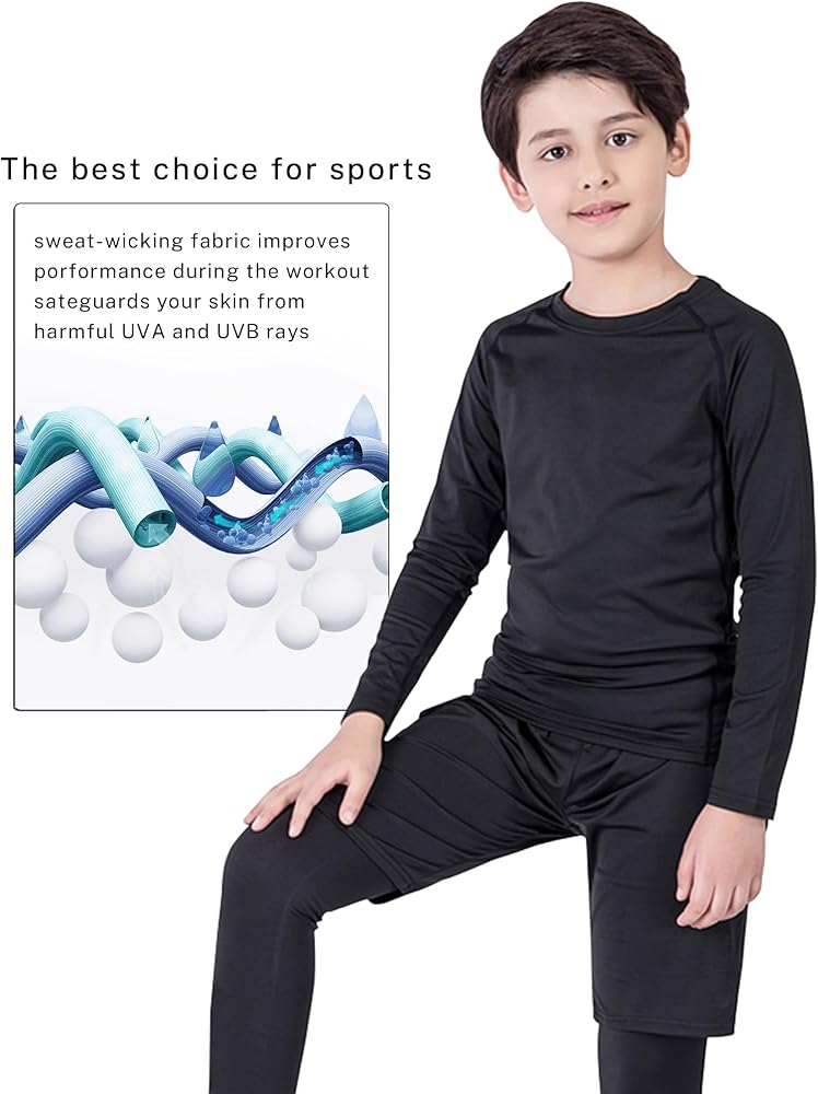 رطوبة: قمصان وضغط الأولاد على مجموعات طماق لها نسيج سريع الجاف والرطوبة الذي ينقل العرق بعيدًا عن الجلد-تبقيك باردًا في كل هذا اليوم