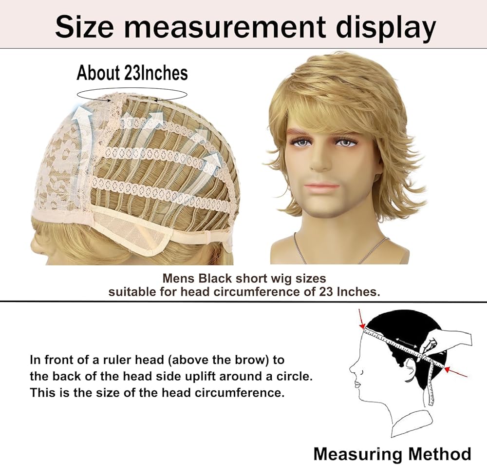 【من النماذج ذات الحجم الواحد-تحتوي غطاء شعر مستعار قصير للرجال على شريطين مرن وقابل للتعديل يجعله أكثر راحة للارتداء ، ويبلغ الحد الأقصى من 21 إلى 23 بوصة ، ودية إلى رأس كبير. كما أنه مستقر وليس من السهل الوقوع. سنرسل لك غطاء شعر مستعار لمساعدتك على تشكيل مظهرك أكثر مثالية.