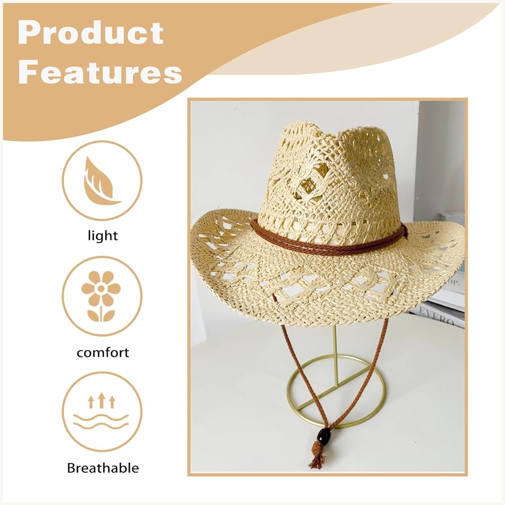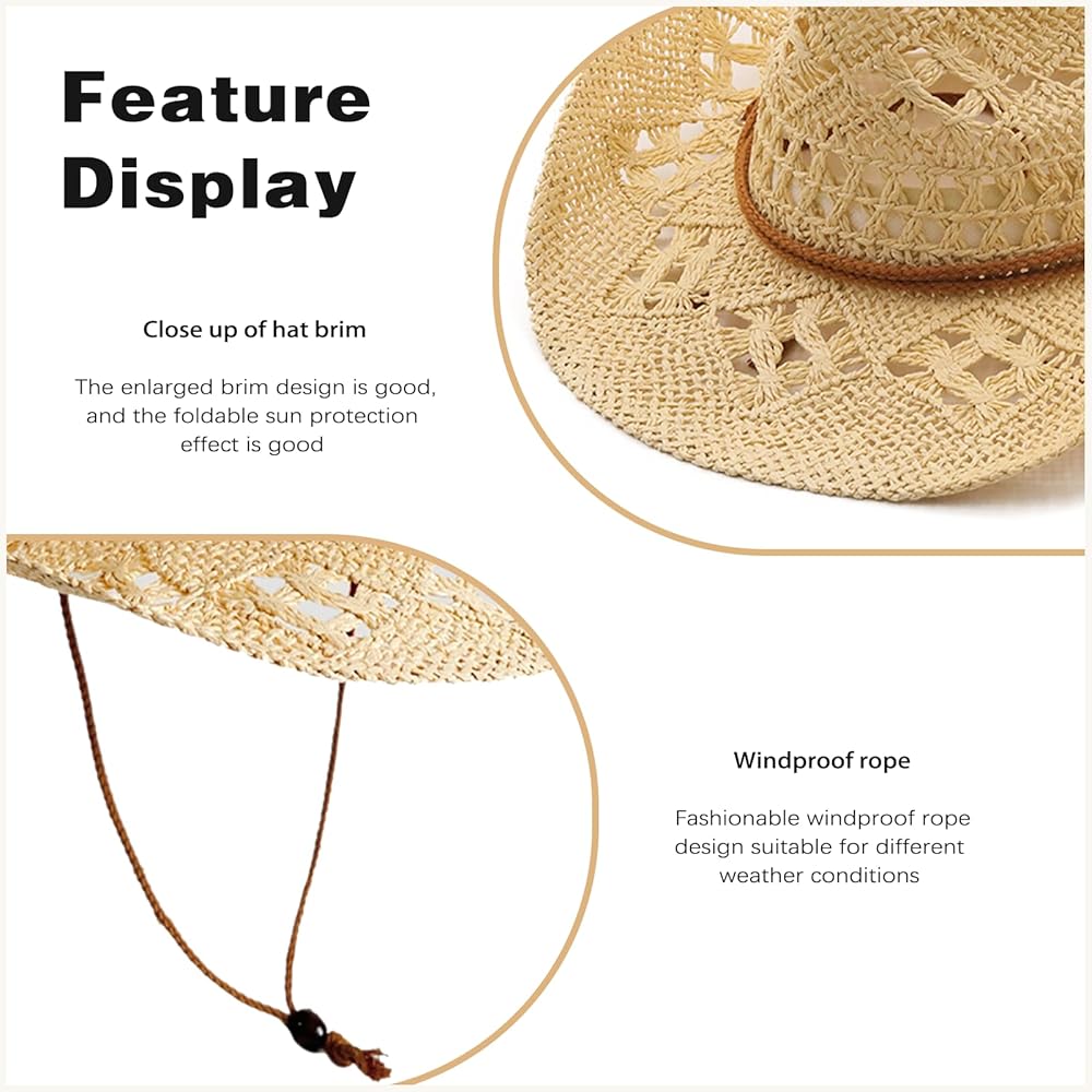 التنفس: هذه قبعة رعاة البقر من القش للسيدات قابلة للتنفس ومريحة ، مناسبة لفصل الربيع أو الصيف أو الطقس الدافئ العام. يتضمن عرقًا أوصحًا للمرونة الداخلية للراحة. يعد التصميم الخفيف والتوقيت الرائع أمرًا رائعًا في أيام الصيف الحارة.