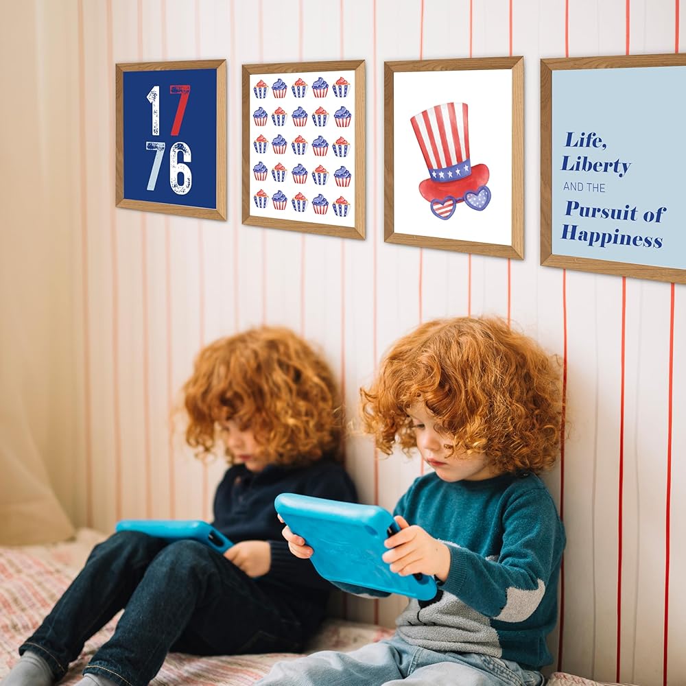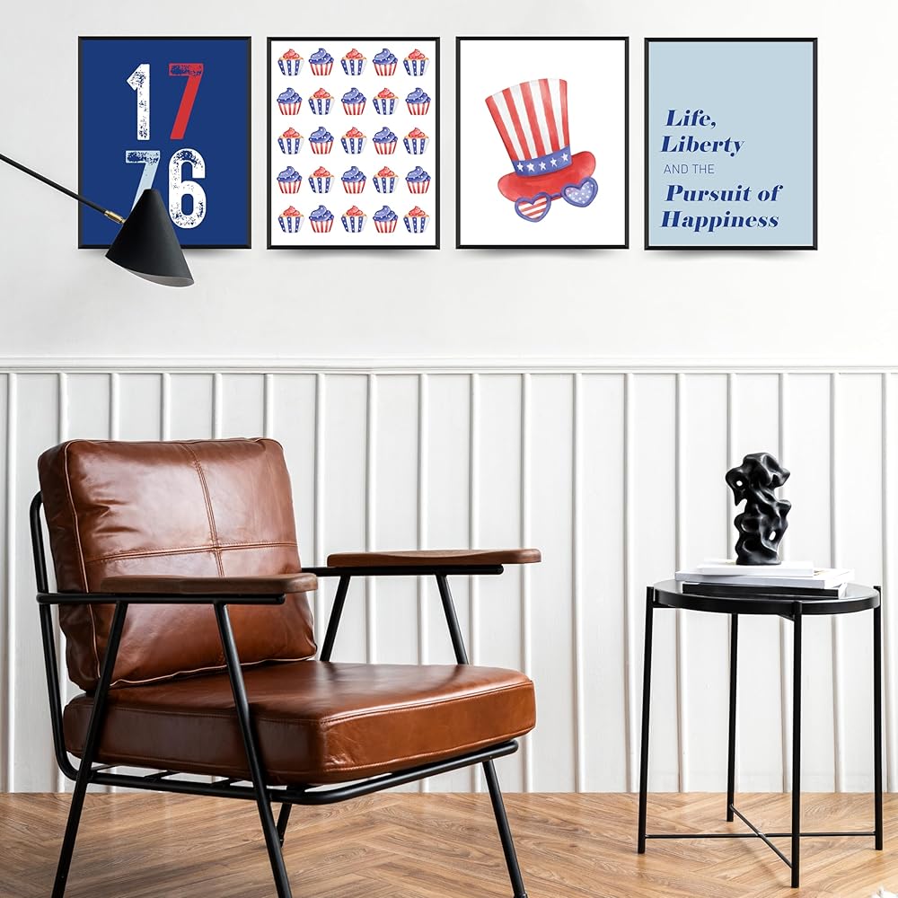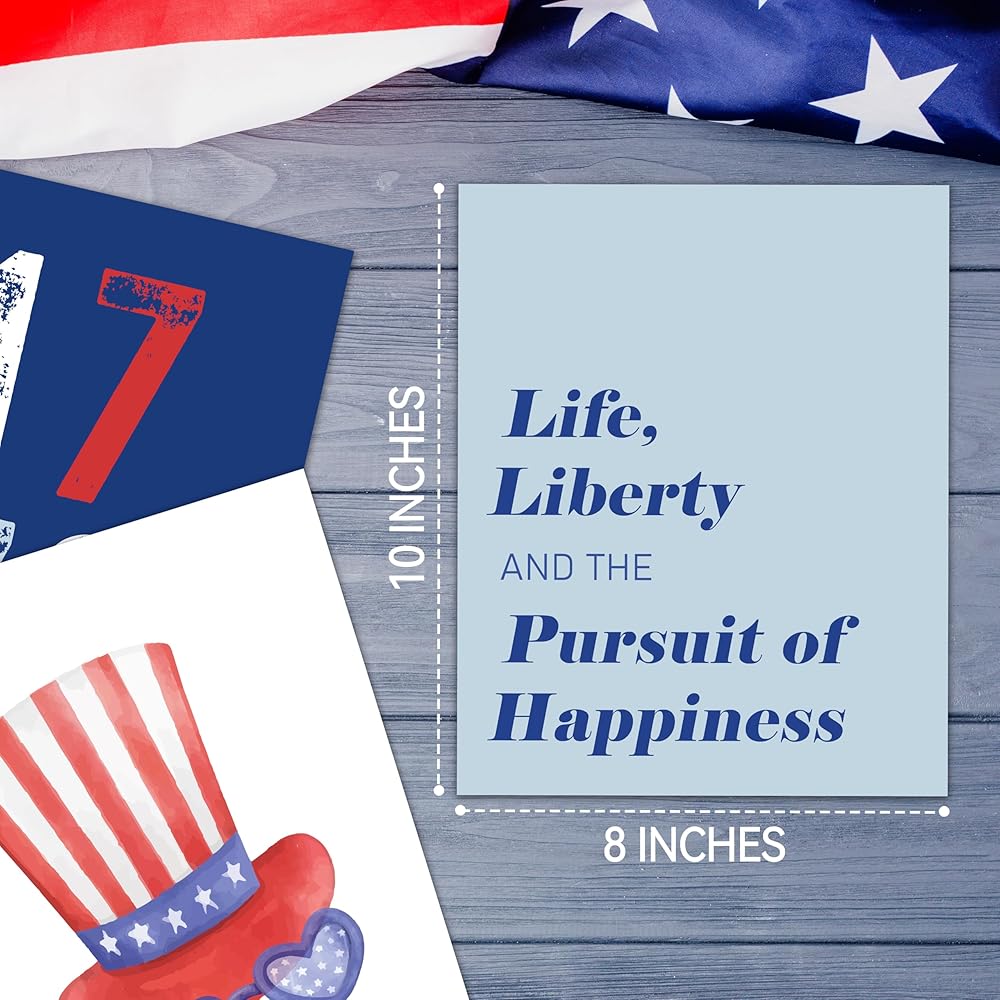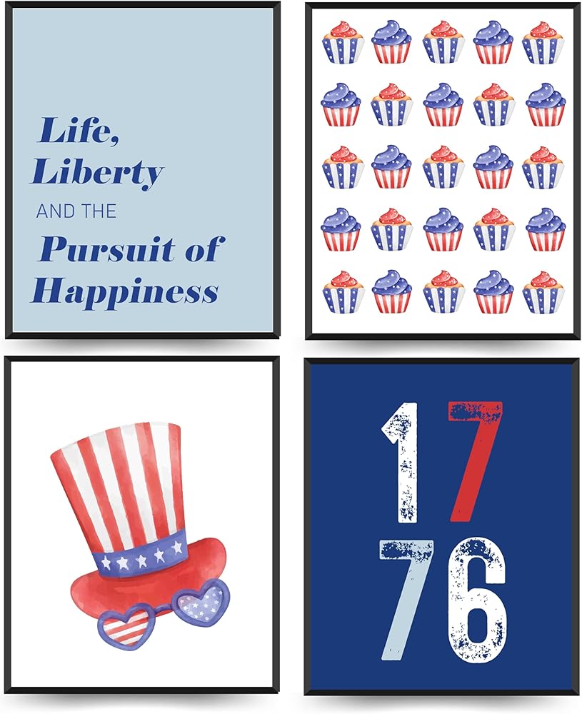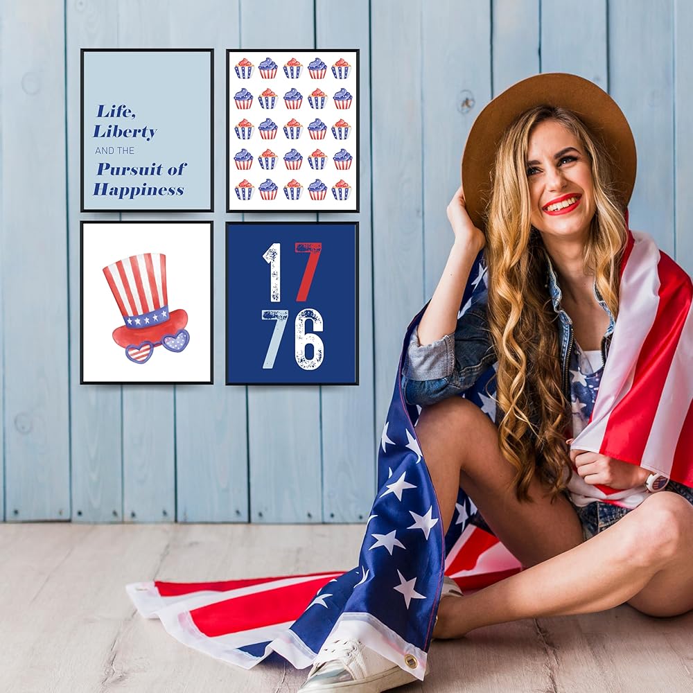 What You Will Receive - The set comprises four packs of patriotic wall art prints, meticulously stored in an envelope sleeve to prevent curling. They're suitable for wall decoration or use in photo frames. Please note that the wall art prints are unframed Independence Day Design - Each art print measures 8 x 10 inches and features unique designs, adorned with Fourth of July motifs, thereby effectively creating a festive atmosphere Durable Material - Our wall art prints are crafted from high-quality coated paper, which is thick, tear-resistant, and durable, ensuring long-term usability Ideal Wall Decoration - Poster wall decor has become a popular method for room decoration. Hanging these prints on the walls of your living room, bedroom, or college dormitory, can infuse spaces with artistic beauty through simple yet elegant designs Excellent Gift Option - This set of wall art prints serves as an excellent gift for friends, colleagues, or family members. They are particularly well-suited for Independence Day celebrations, patriotic-themed parties, and various other occasions