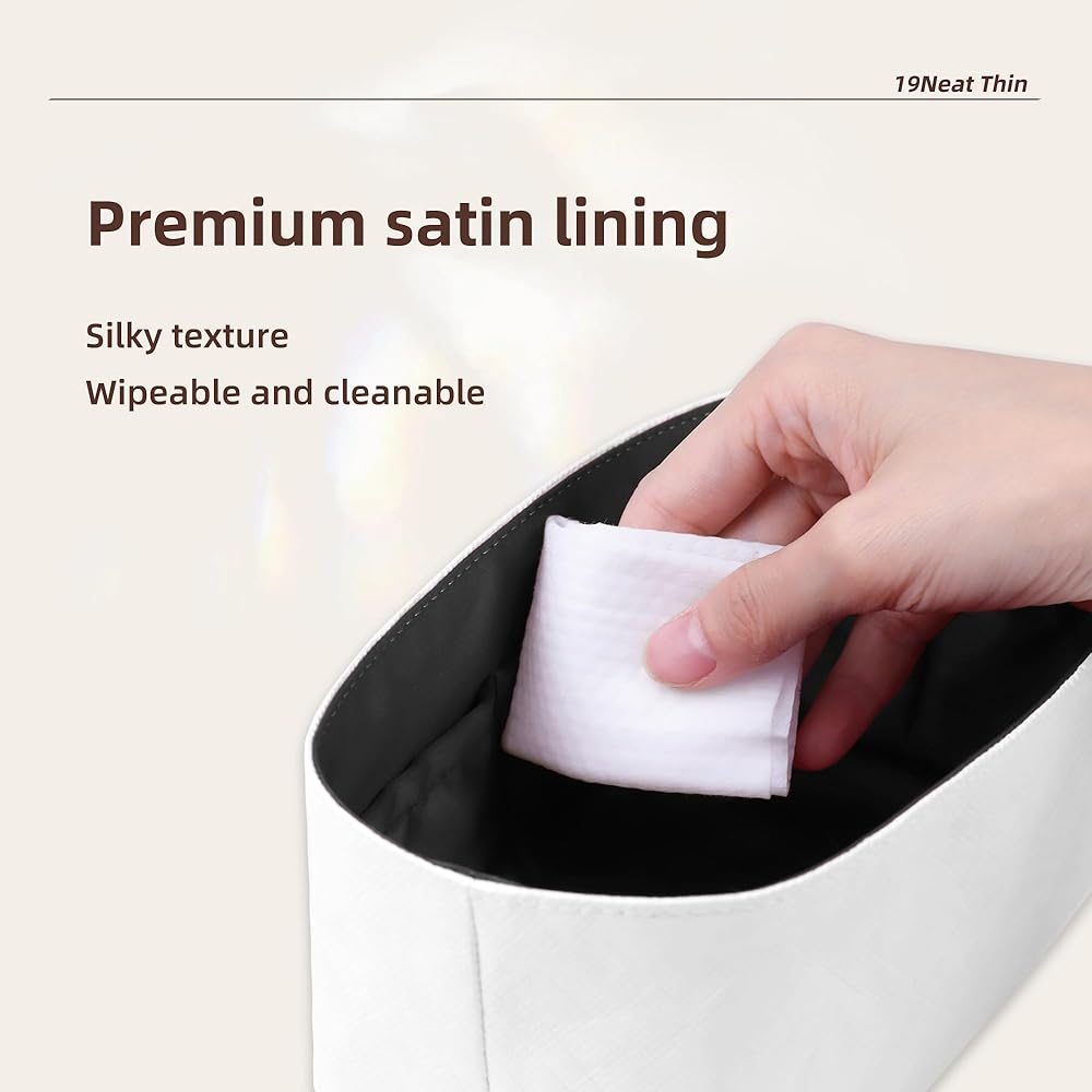 الشعور باللمس الحريري الساتان الداخلي: بطانة منظمنا مصنوعة من مواد الساتان ، مما يوفر لمسة حريرية. يتميز إدخال المنظم بسطح فريد يشبه القماش وبطانة داخلية ساتان