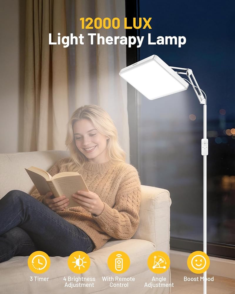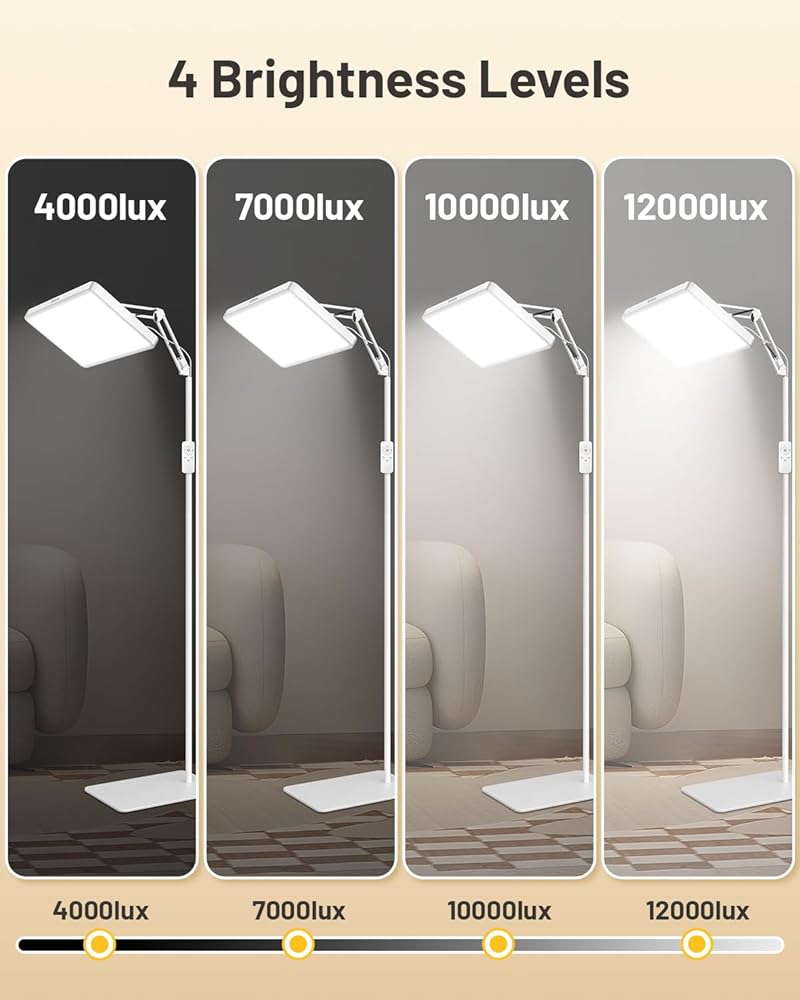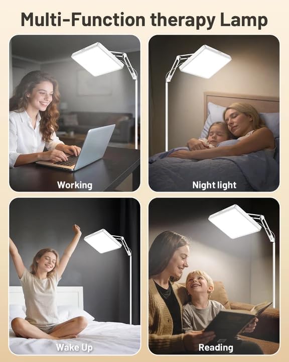 【12000 Lux Therapy Light】 مصباح خفيف للعلاج لدينا يوفر ما يصل إلى 12000 لوكس من مصباح علاج الشمس الخالي من الأشعة فوق البنفسجية ، ويحصل على مصباح مصباح صحي وآمن وطبيعي دون الوهج والميض ، مما يجعلك تشعر بالحيوية والتركيز والتجديد. مثالي للعائلة والأصدقاء!