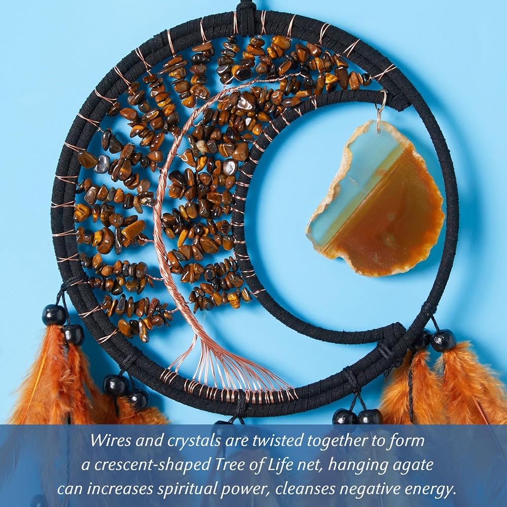 🌙【 التصميم الأصلي】: يتم تشكيل هذا الماسك أحلام القمر في شبكة من شجرة الحياة على شكل هلال ، ومزخرف بالأسلاك والبلورات ، تم تعليق قلادة عقيق صغيرة تحت الحلقة ، وتزيد من القوة الروحية ، وتطهير الطاقة السلبية وتخلق شعورًا حلوًا وحلمًا ، يرمز إلى الحياة والقوة