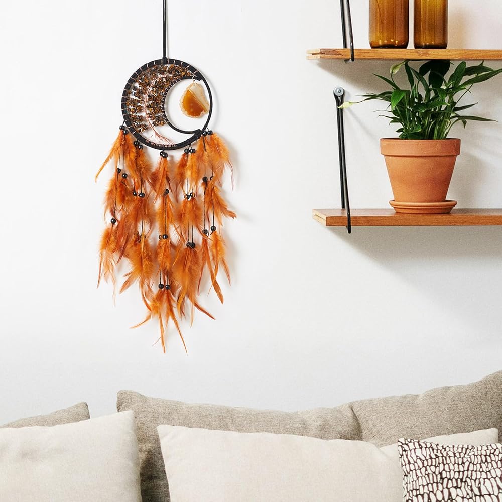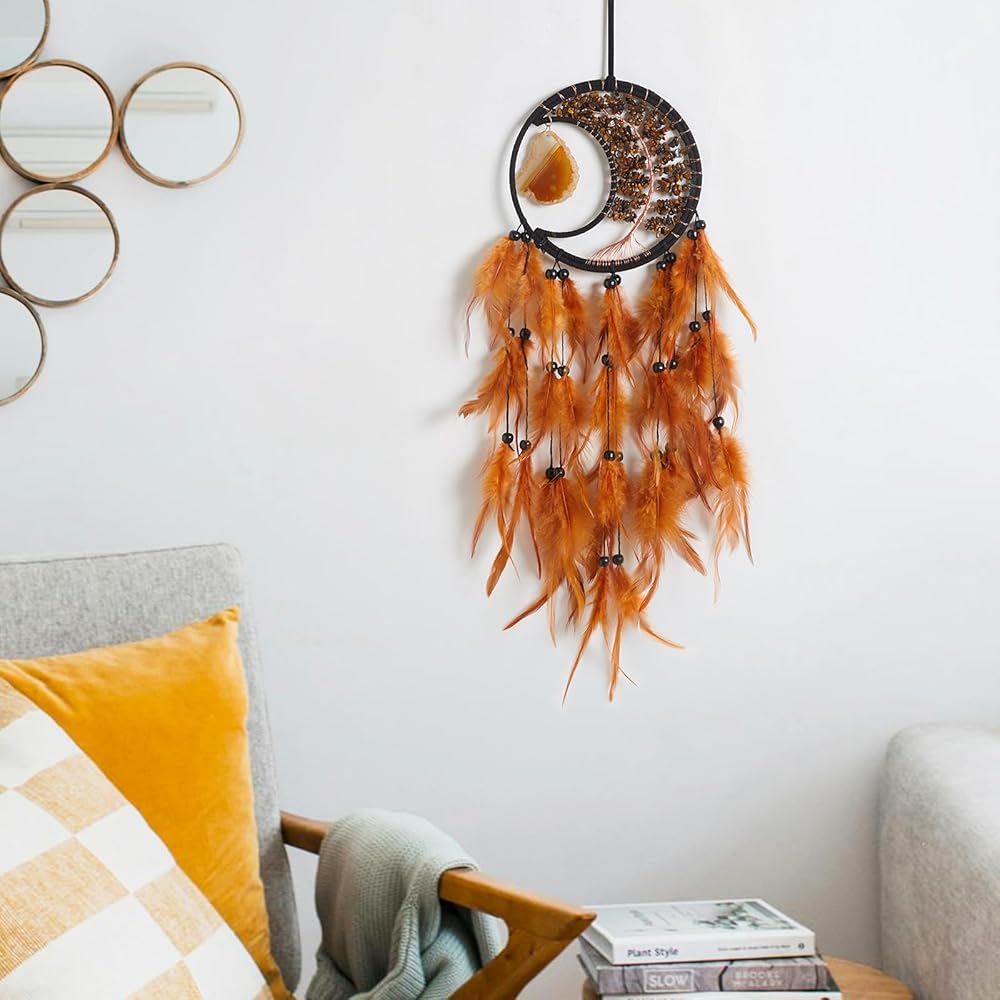 ☀ 【المادة الطبيعية】: يتكون الماسك الحلم المعلق من ريش التبخير والأحجار الكريمة والخرز والقرعة العقيق والأسلاك وشبكة الكروشيه المصنوعة يدويًا.