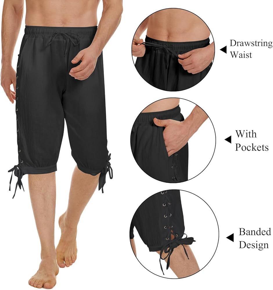 • 【النمط الكلاسيكي هالوين】 شورتات القراصنة عصر النهضة لها خصر مرن ورسام للاشتعال. تصميم نطاقات على كلا الجانبين ، مع الطراز القوطي من خلال الثقوب المعدنية. السراويل القصيرة للرجال في العصور الوسطى هي مباراة مثالية لأزياء القراصنة في هالوين ، وهي تعمل بشكل رائع لإنهاء مظهر القراصنة. بالإضافة إلى بعض ملحقات القراصنة (قبعة القراصنة ، وأحذية القراصنة ، والسيف ، وحزام القراصنة ، وما إلى ذلك) ، ستحصل على الكثير من المجاملات.