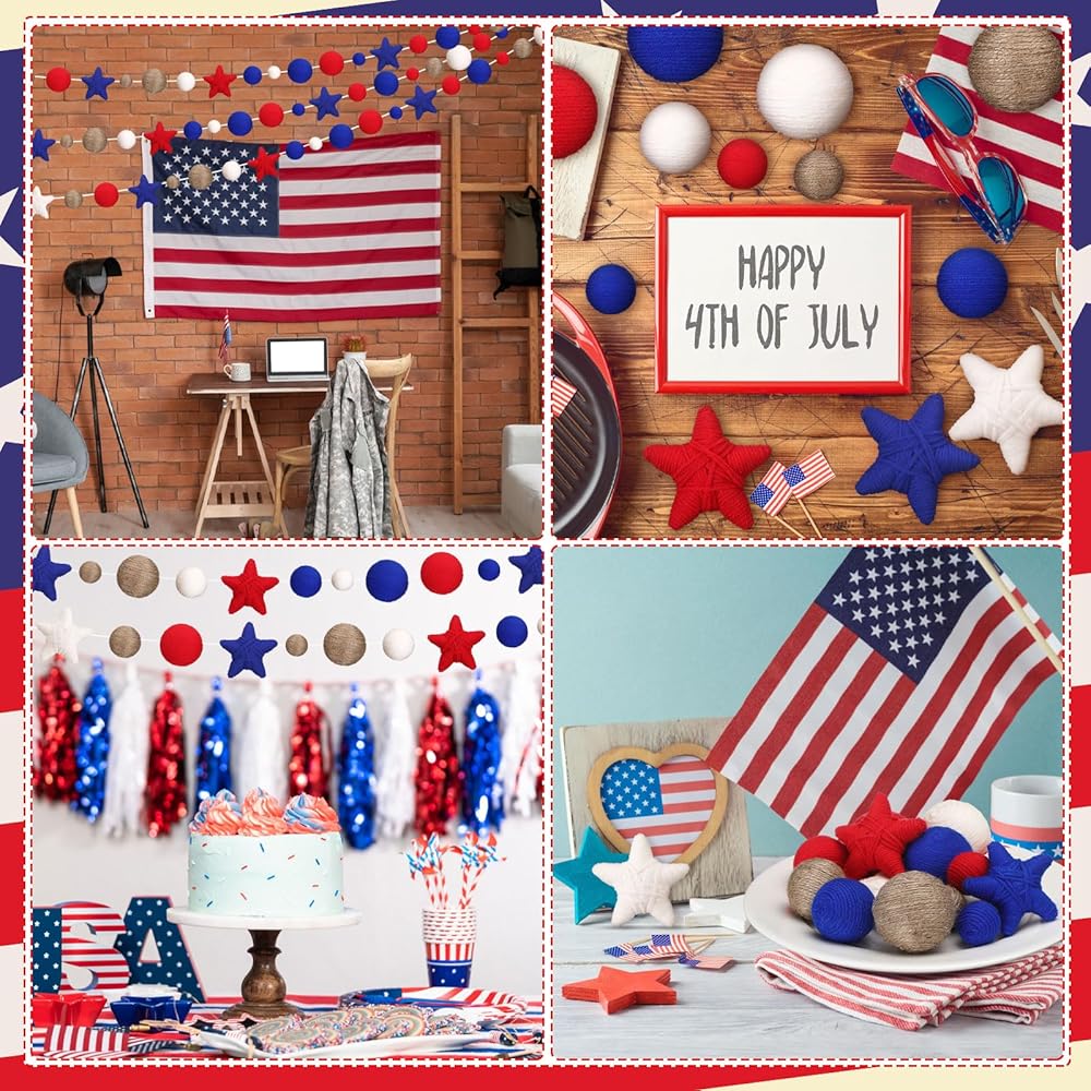 • Abundant Quantity: The patriotic rope yarn balls set includes 16 pieces, 3 different sizes, approximately 2.36 inches, 1.57 inches and 1 inch, 2 styles, ball and star; This ample quantity and size array are ideal to cater to your decoration needs and can be gifted to family, neighbors, and colleagues, adding a touch of American pride to their interior decor