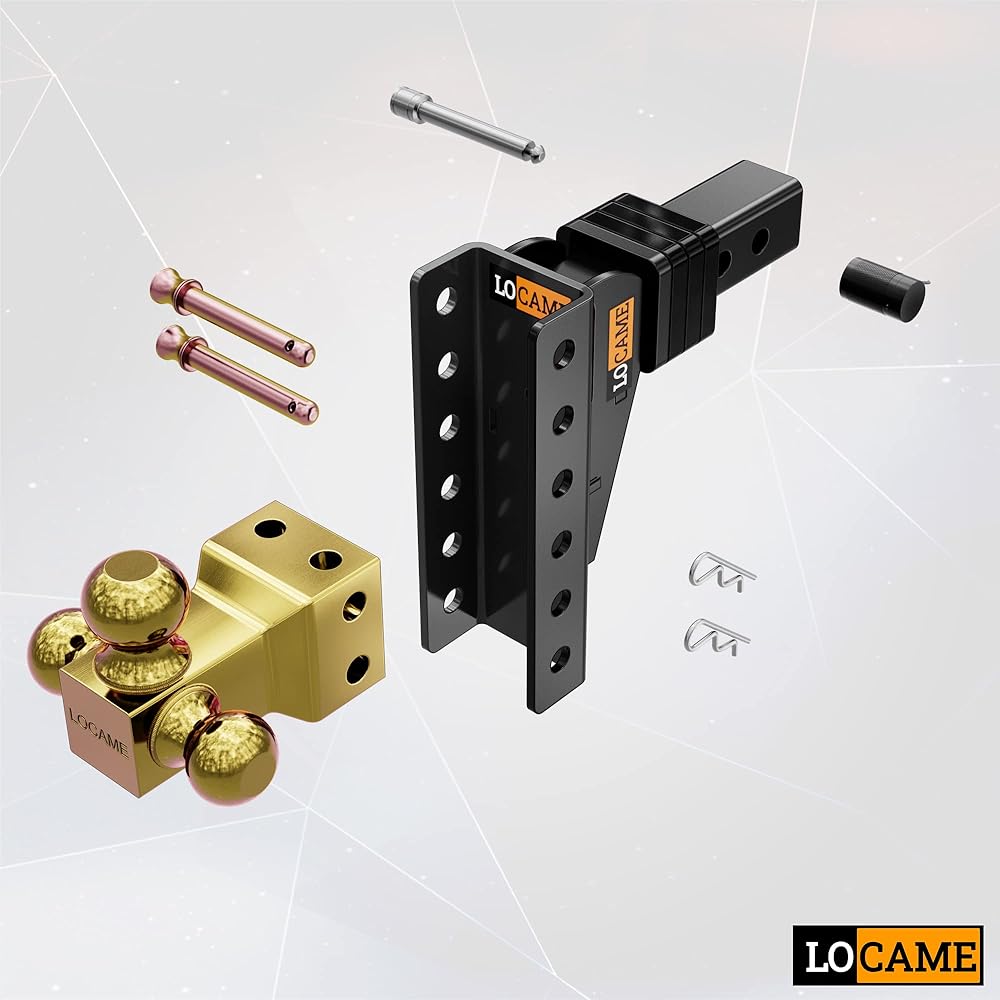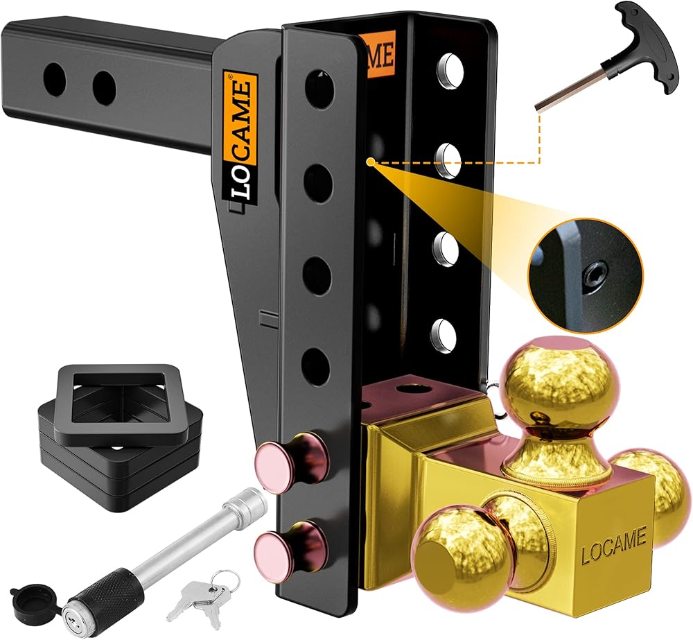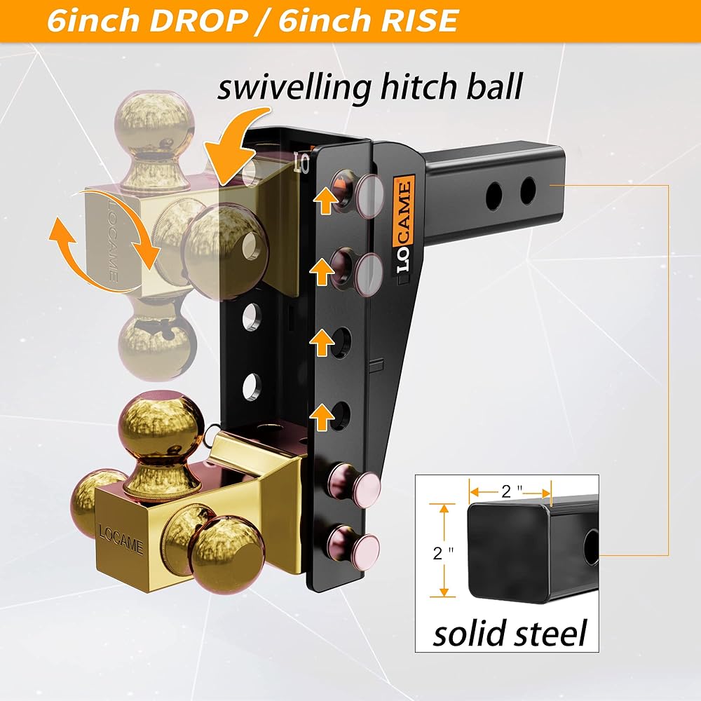 وصلة ربط مقطورة قابلة للتعديل من LOCAME، كرة ثلاثية (1-7/8 بوصة، 2 بوصة، 2-5/16 بوصة)، تناسب جهاز استقبال 2 بوصة، وصلة قطرة/ارتفاع 6 بوصة، وصلة قطر 15000 رطل GTW للخدمة الشاقة شاحنة، حامل كروي صلب، LC0020
