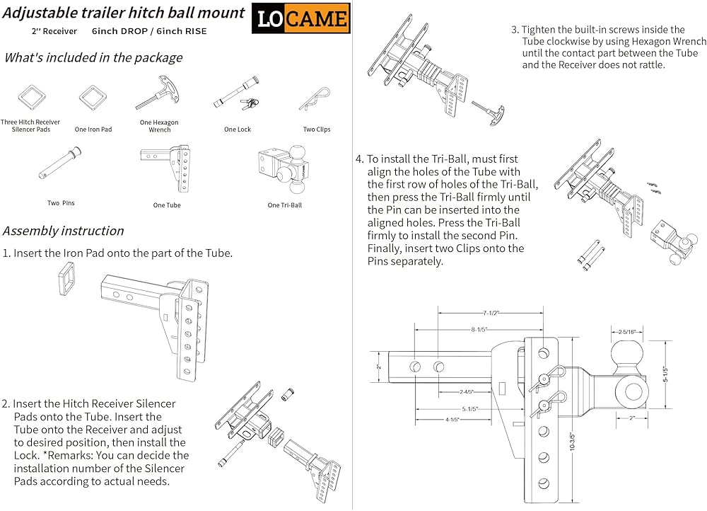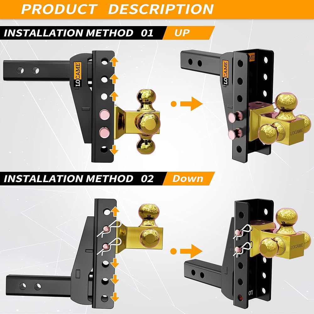 • مقاسات كرات متعددة: كرة ثلاثية قابلة للدوران يمكن أن تلبي جميع احتياجات السحب الخاصة بك، كرة ربط 1-7/8 بوصة لديها قدرة سحب تصل إلى 7500 رطل، كرة ربط 2 بوصة لديها قدرة سحب تصل إلى 10000 رطل، بينما كرة ربط 2-5/16 بوصة توفر قدرة سحب رائدة في الصناعة تصل إلى 15000 رطل، حتى تتمكن من نقل أحمال أثقل مثل الشاحنات الثقيلة أو المركبات الترفيهية بسهولة