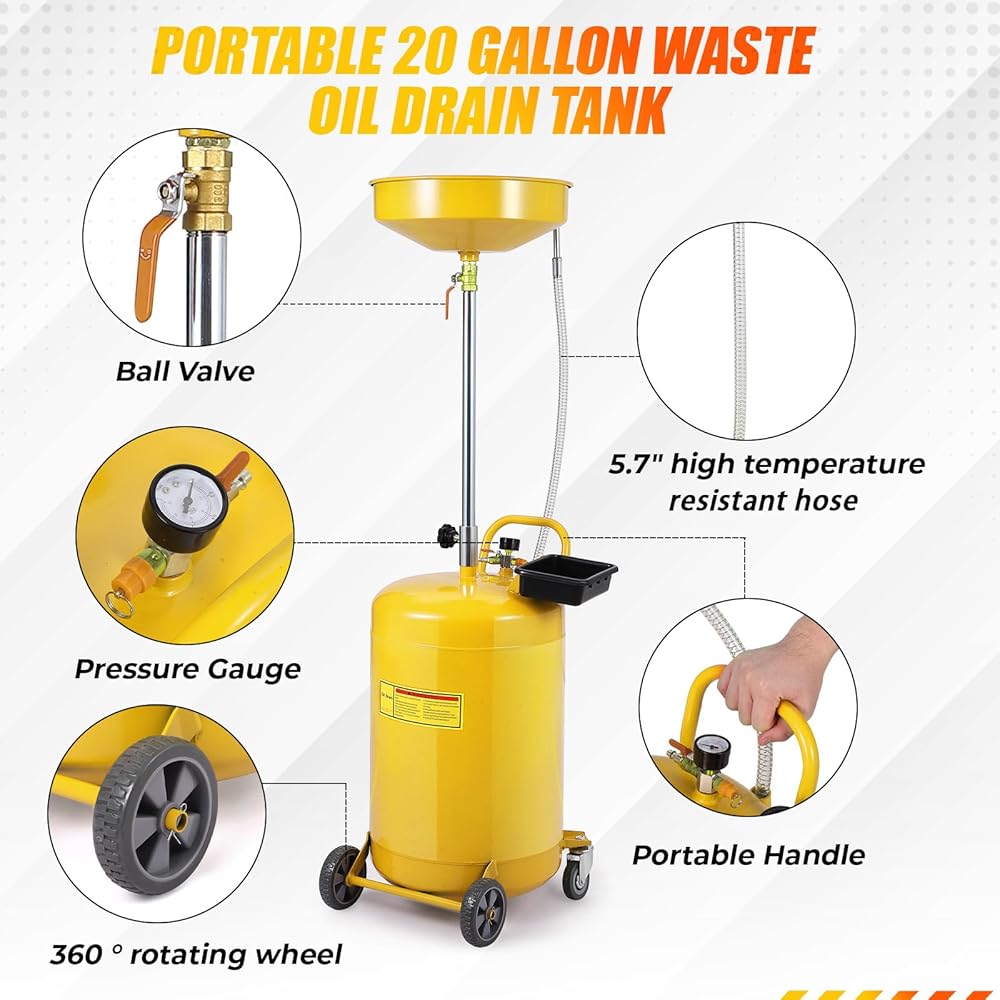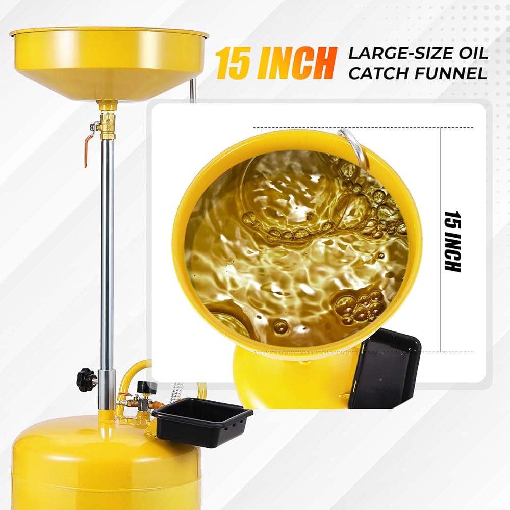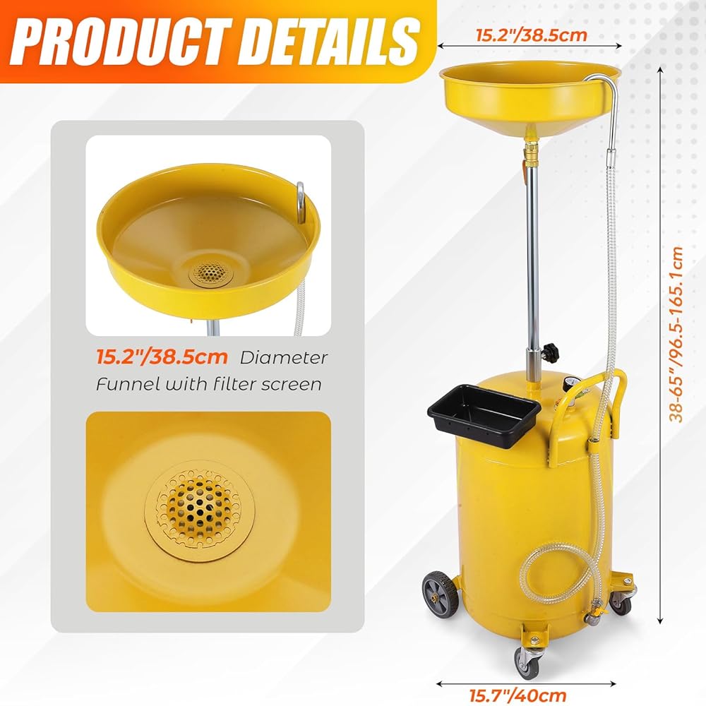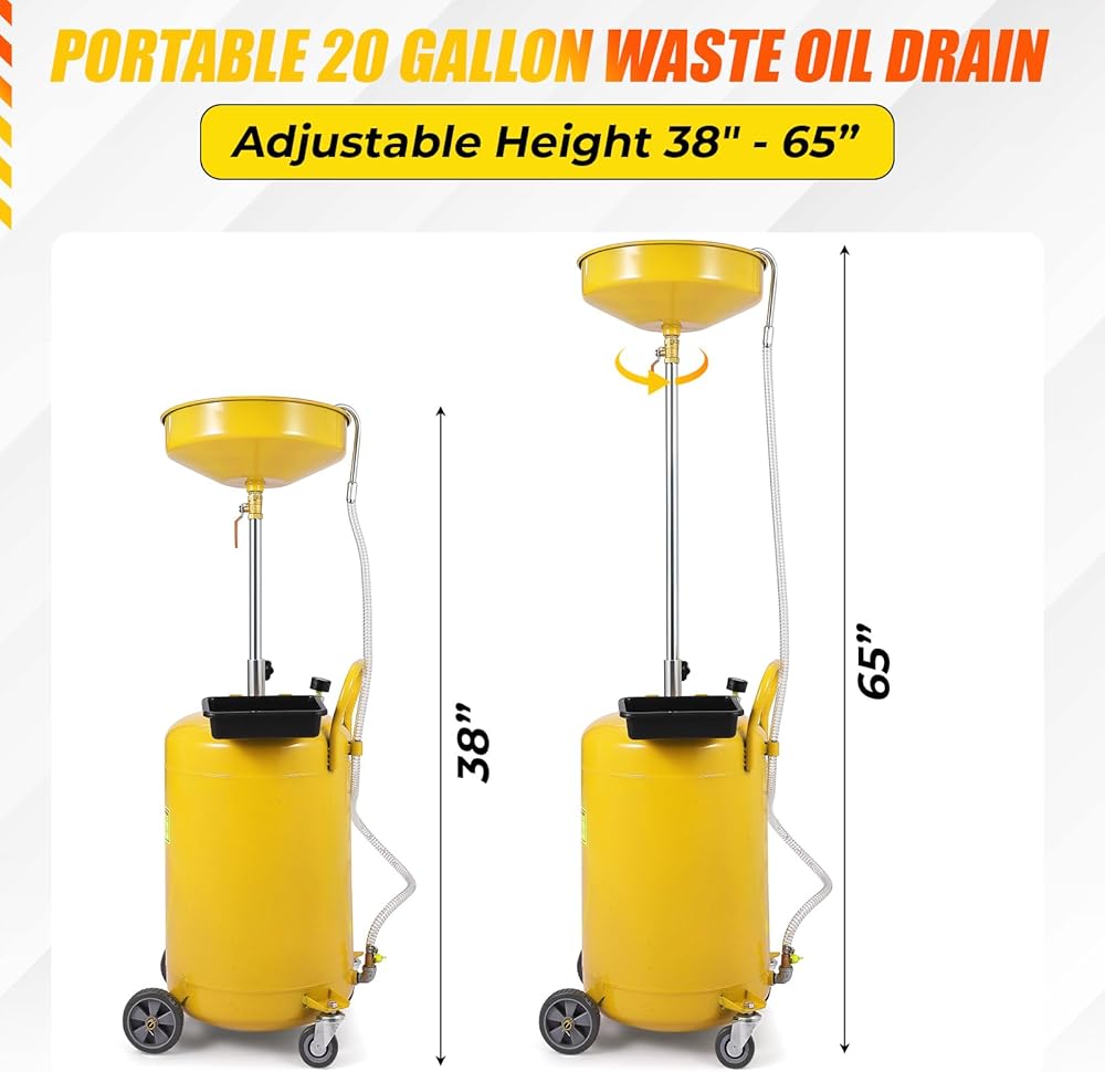 ارتفاع قابل للتعديل: تحتوي حاوية تصريف الزيت على مجموعة واسعة من الارتفاع القابل للتعديل ، 28 "إلى 62" لاستنزاف السوائل من المركبات على المصاعد. يمكنه إكمال عمل جمع نفايات السيارات بشكل صحيح. مناسبة للمصنع ومتجر إصلاح السيارات والاستخدام المنزلي.