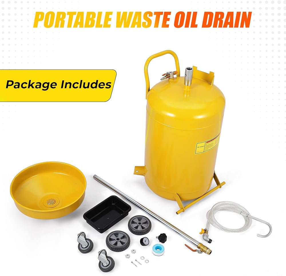 سعة 8 جالون: تبلغ سعة خزان تصريف النفط هذا 8 جالون ويمكنه جمع زيت النفايات من 3-4 سيارات. إنه يتميز بمبدأ العمل الذي يتم تشغيله في الهواء ، ويمكن أن يفرج مصرف زيت النفايات زيت النفايات من خزان الوقود في وقت قصير. رائع للتصريف ونقل وإخلاء الزيوت والسوائل.
