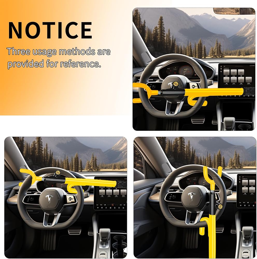 • 【تصميم ربط مزدوج وتصميم قابل للضبط】: يتميز القفل بنظام ربط مزدوج مبتكر مع قضيب قابل للتعديل ، والذي يضمن الاستقرار وتناسب آمن على مجموعة واسعة من عجلات التوجيه. هذا التصميم لا يعزز فقط الأمان العام للقفل ولكنه يوفر أيضًا توافقًا متعدد الاستخدامات مع نماذج مركبة مختلفة.