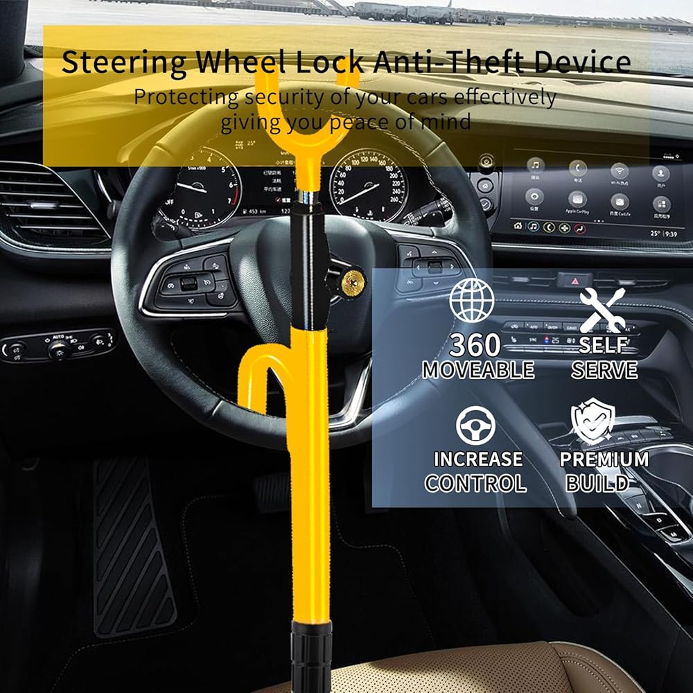 قفل عجلة القيادة ، جهاز سيارة مضاد للسرقة الثقيلة ، قفل طول قابل للتعديل مع 3 مفاتيح ملائمة عالمية لشاحنات السيارات وسيارات الدفع الرباعي (الأصفر)