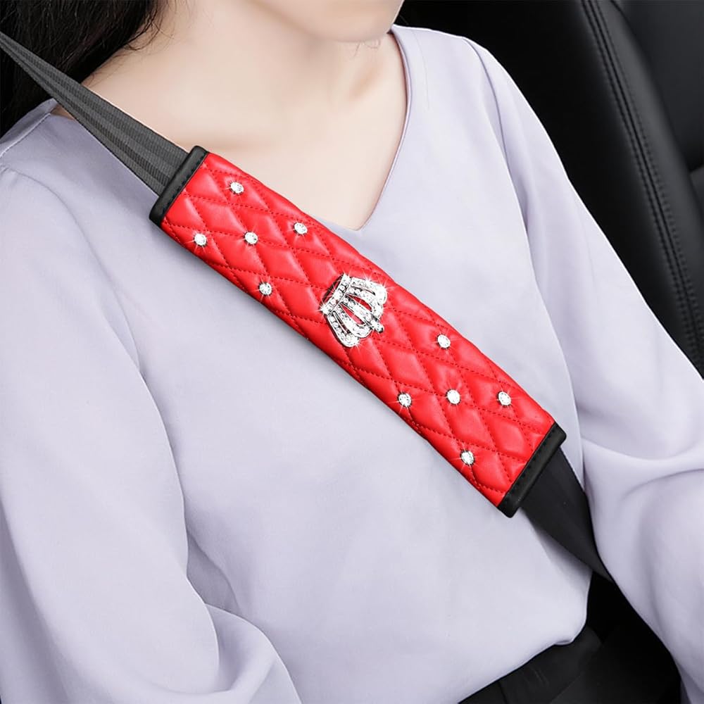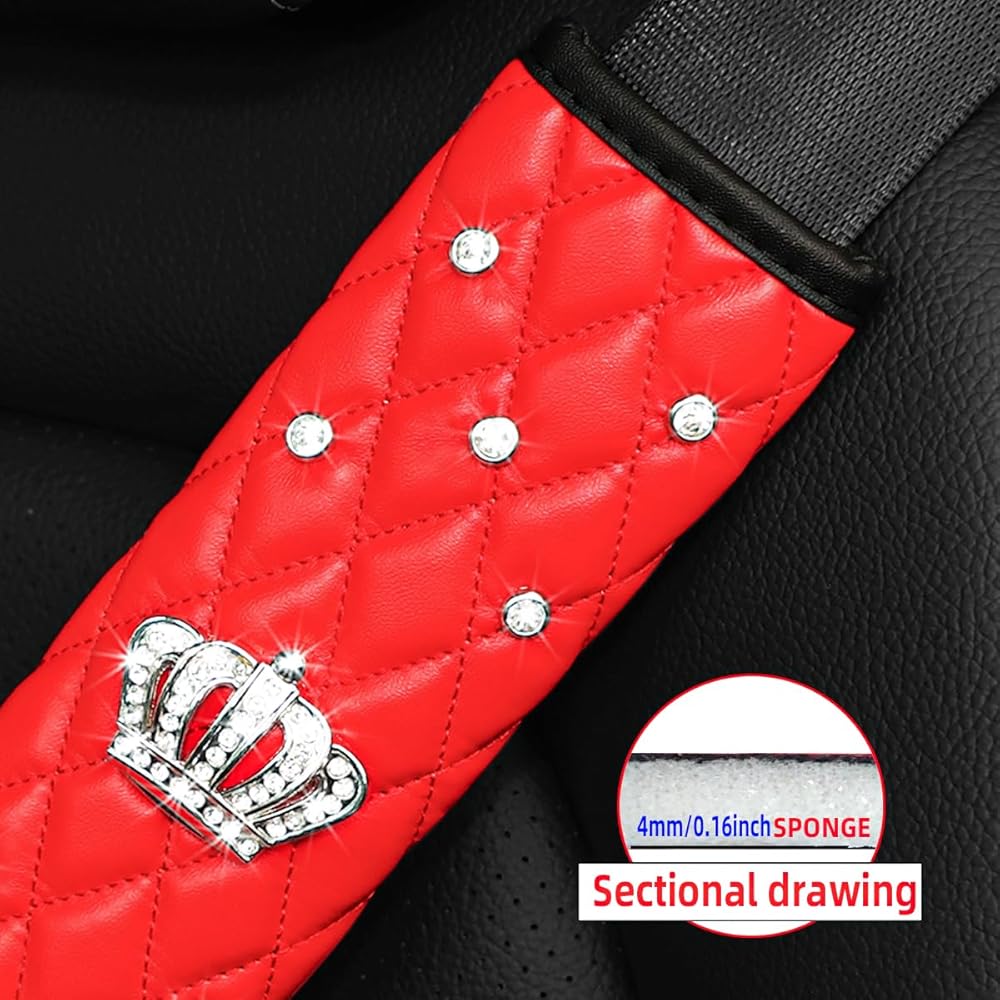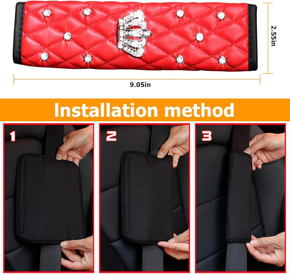 Bling Rhinestone Design: This car seatbelt cover is designed with exquisite crown and diamonds, which can bring you a dazzling and luxurious look, it looks even more sparkling when exposed to light. It can add just the right amount of flair to your car, thus making your car's interior elegant and sparkling.