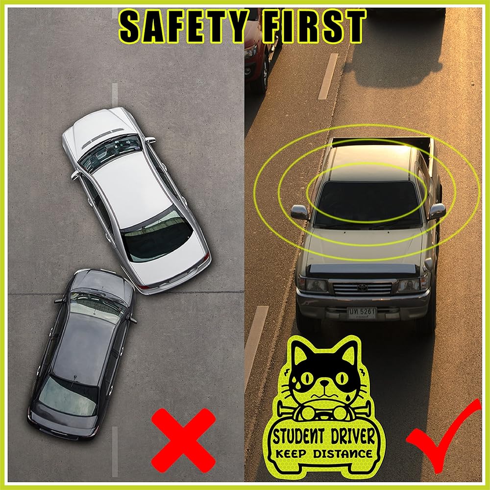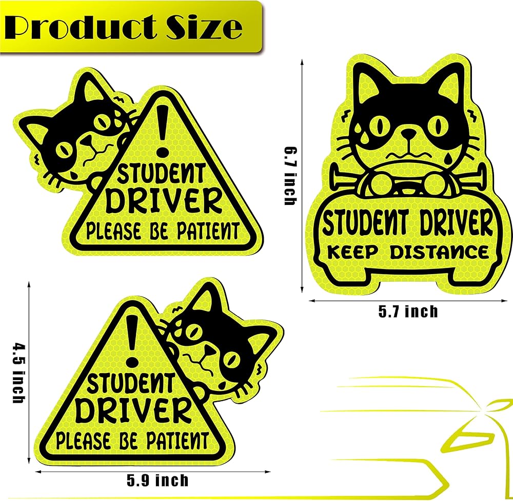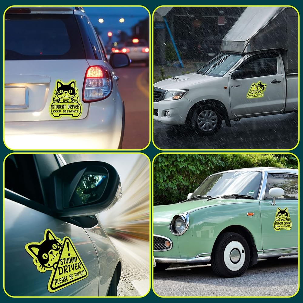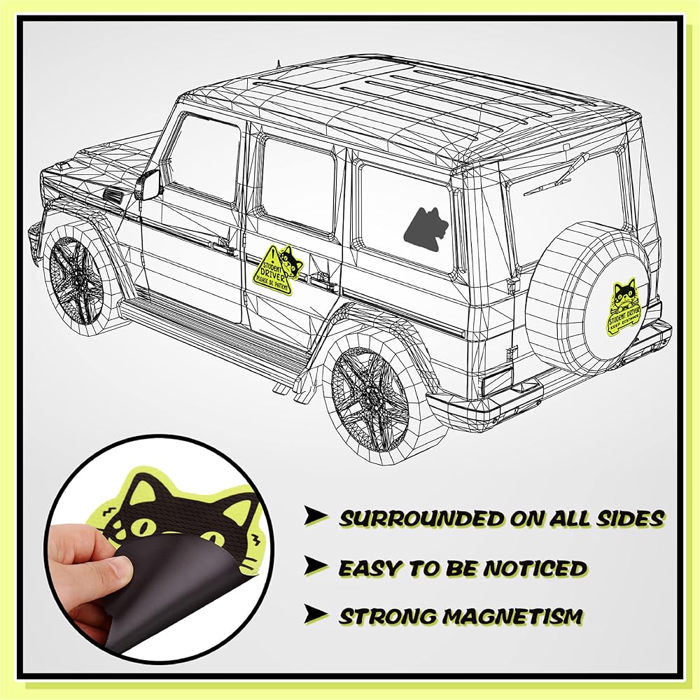 • تحسين السلامة: تحتوي الحزمة على 3 قطع من ملصقات مغناطيسية للسائقين الطالب ، وتأتي في شكلين مختلفين ، بحيث يمكنك لصقها على جانبي السيارة ، وجمع السيارة ، مما يضمن أن سائقي السائقين الآخرين يمكن أن يلاحظوك من أي من الزاوية