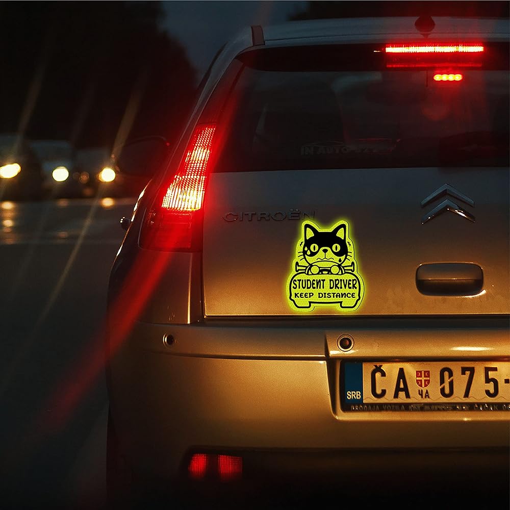 • المغناطيس العاكس: يتكون مغناطيس سيارة سائق الطالب هذا من مواد عاكسة للتأكد من أن ملصقات السيارة مرئية بشكل واضح حتى أثناء الليل والضباب والأمطار الغزيرة ، مما يضمن أن السائقين الآخرين يمكن أن يلاحظوك من أي من الجانبين أو خلف السيارة ؛ هذا مساعد جيد للمبتدئين دون تجربة قيادة لطيفة