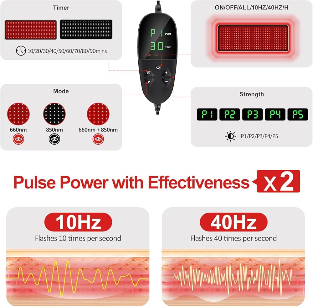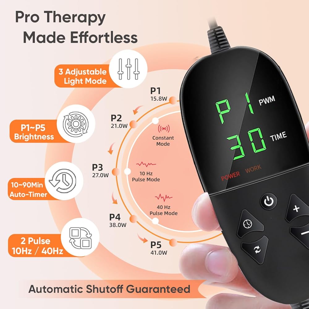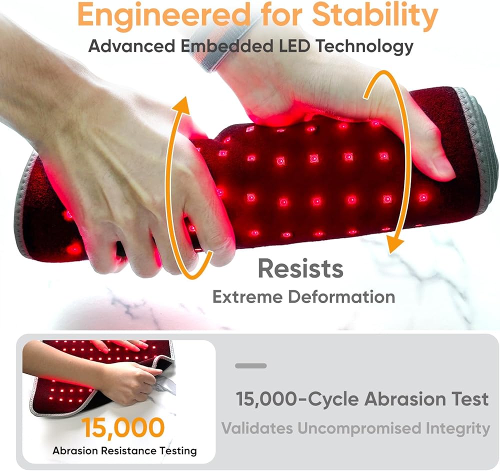 𝟔𝟔 𝐇𝐢𝐠𝐡-𝐏𝐞𝐫𝐟𝐨𝐫𝐦𝐚𝐧𝐜𝐞 𝐋𝐄𝐃𝐬 𝐰𝐢𝐭𝐡 𝟑-𝐢𝐧-𝟏 𝐓𝐞𝐜𝐡: يدمج كل لمبة ثلاث رقائق متقدمة ، مزجًا أطوال موجية 850nm و 650nm للدفء المتوازن والضوء المشع. توفر المجموعة الفائقة الكثافة من 198 رقائق إضاءة ثابتة مع عدم وجود فجوات. تم تصميمه للمتانة على المدى الطويل-المصنوع لمدة 5000 ساعة ، ويتفوق على النماذج القياسية-إنه طي بشكل مسطح للتخزين المدمج ، مما يجعله مثاليًا للاستخدام بعد الأنشطة أو الاسترخاء اليومي