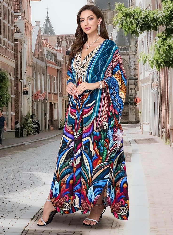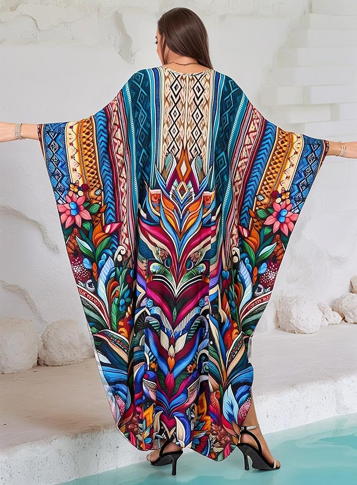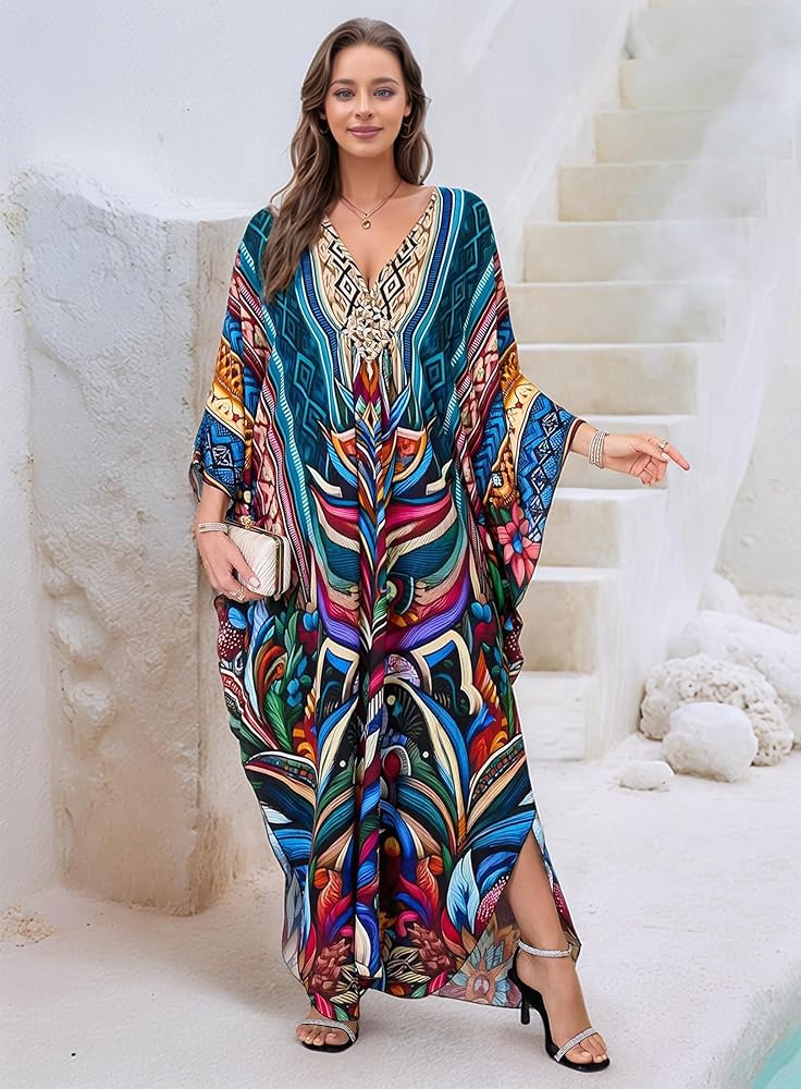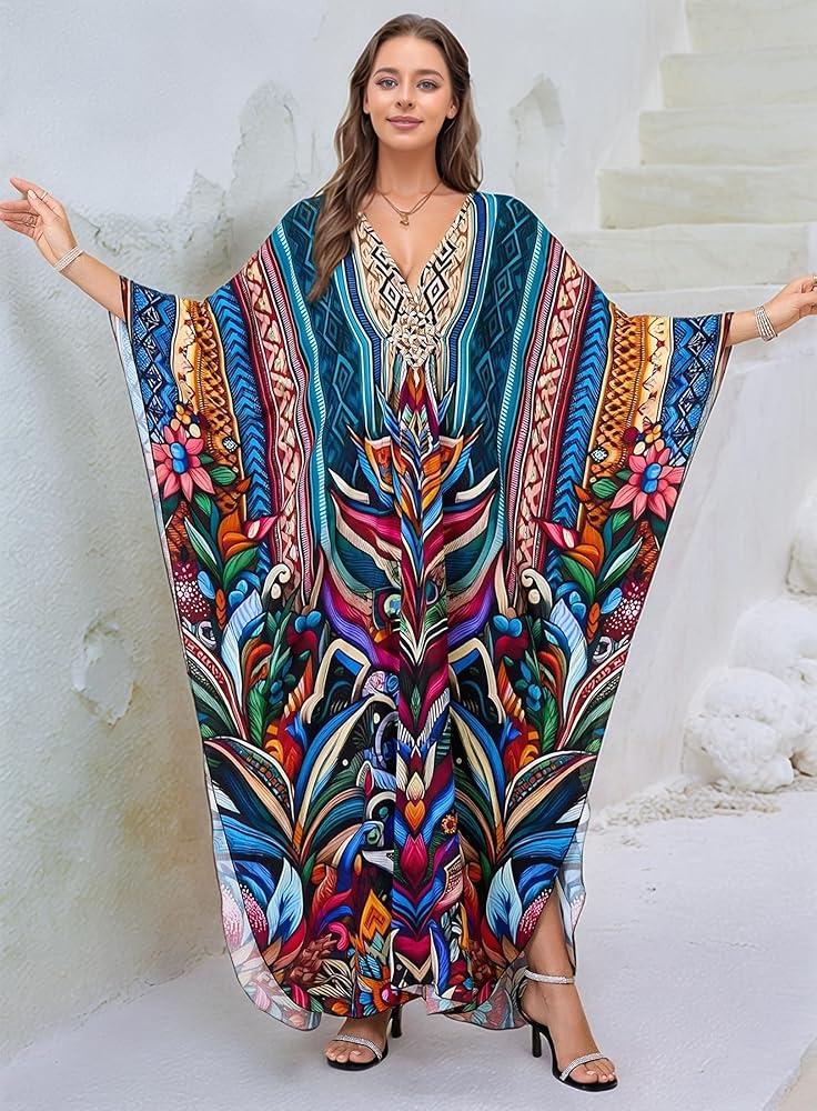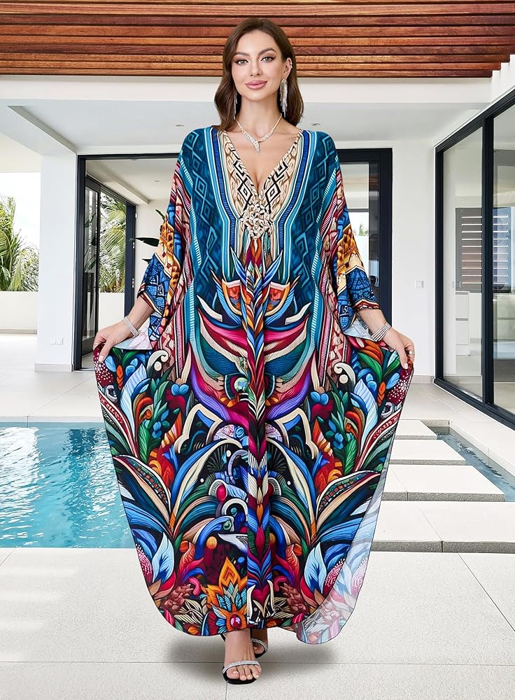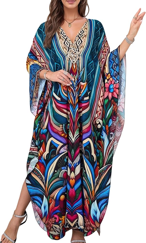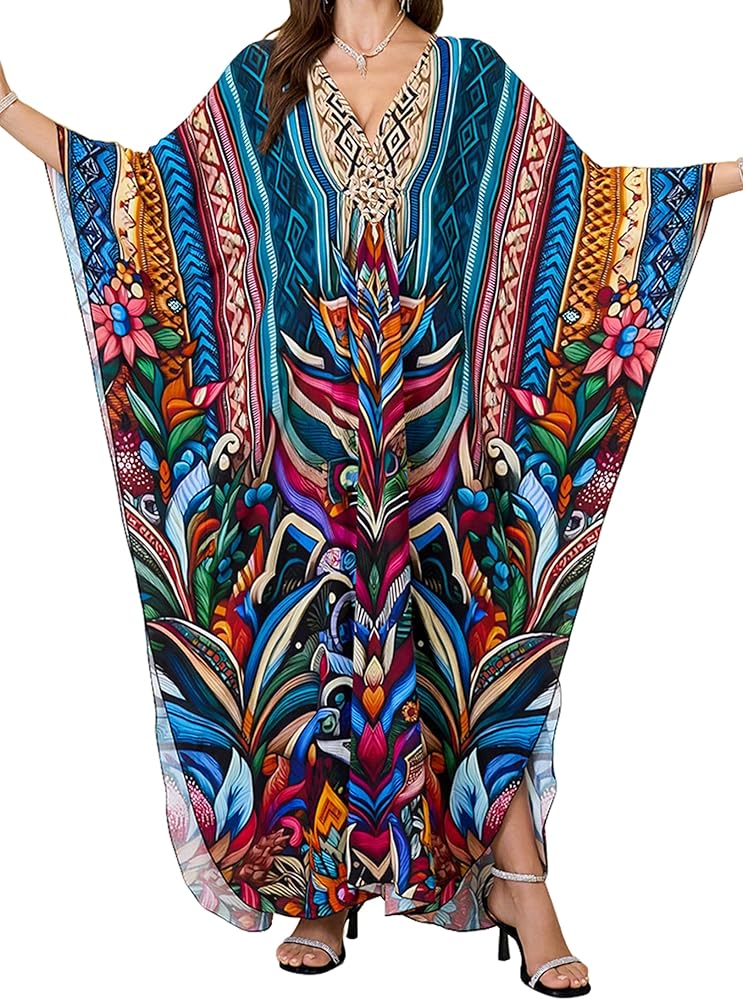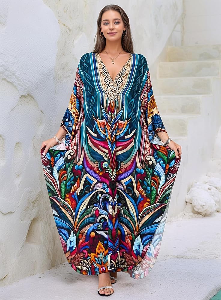 • Kaftan Dress Plus Size: Beach Cover Ups Length :53"(135CM) Bust :57"(144cm) Fit for US size S - 2XL Distinct Ethinic Boho Print; The Caftan Dress Suits Different Personal Styles, It Allows You to Show Confidence and Elegance.