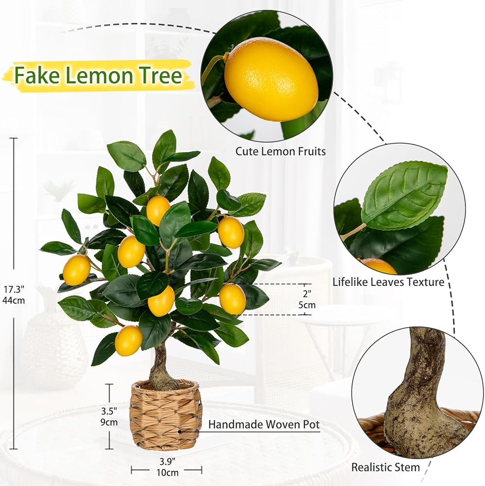 This artificial lemon tree features high-quality plastic and polystyrene materials, creating incredibly lifelike lemons and leaves, showcases green plant for a realistic look and feel, which it is hardly to distinguish between it and other small lemon tree
