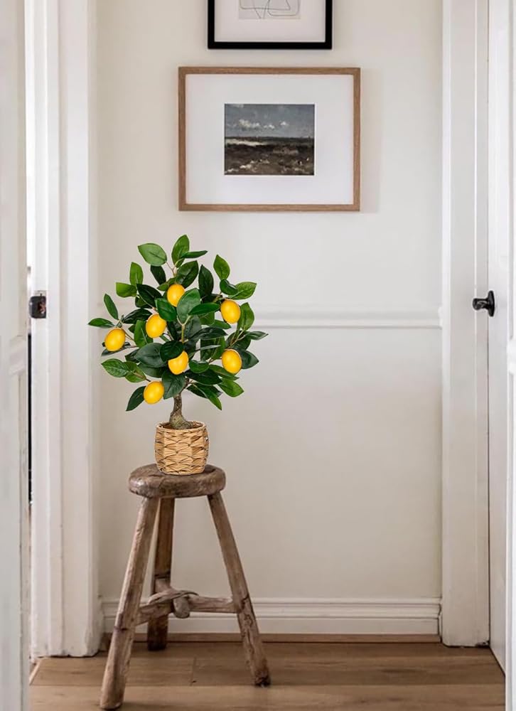 Ideal for a variety of home styles, including modern, farmhouse, Scandinavian, and minimalist. Whether placed in the living room, dining room, or office, this potted lemon plant, with its woven pot, effortlessly complements different interior designs, bringing a refreshing touch of nature and creating a cozy, inviting atmosphere.