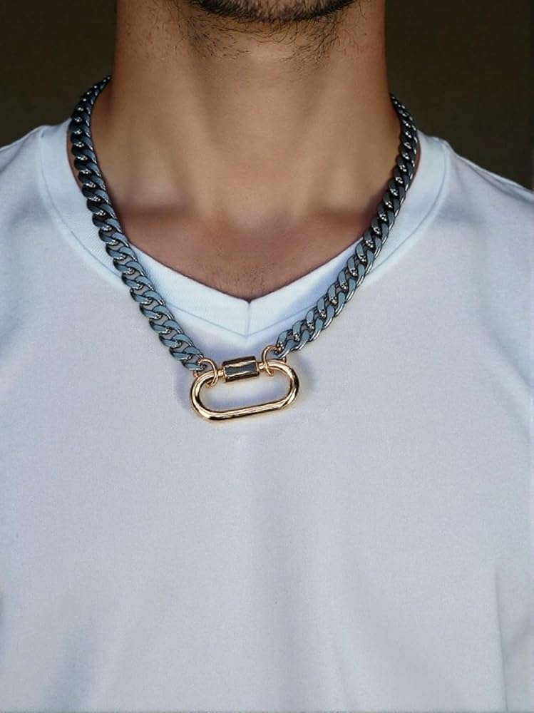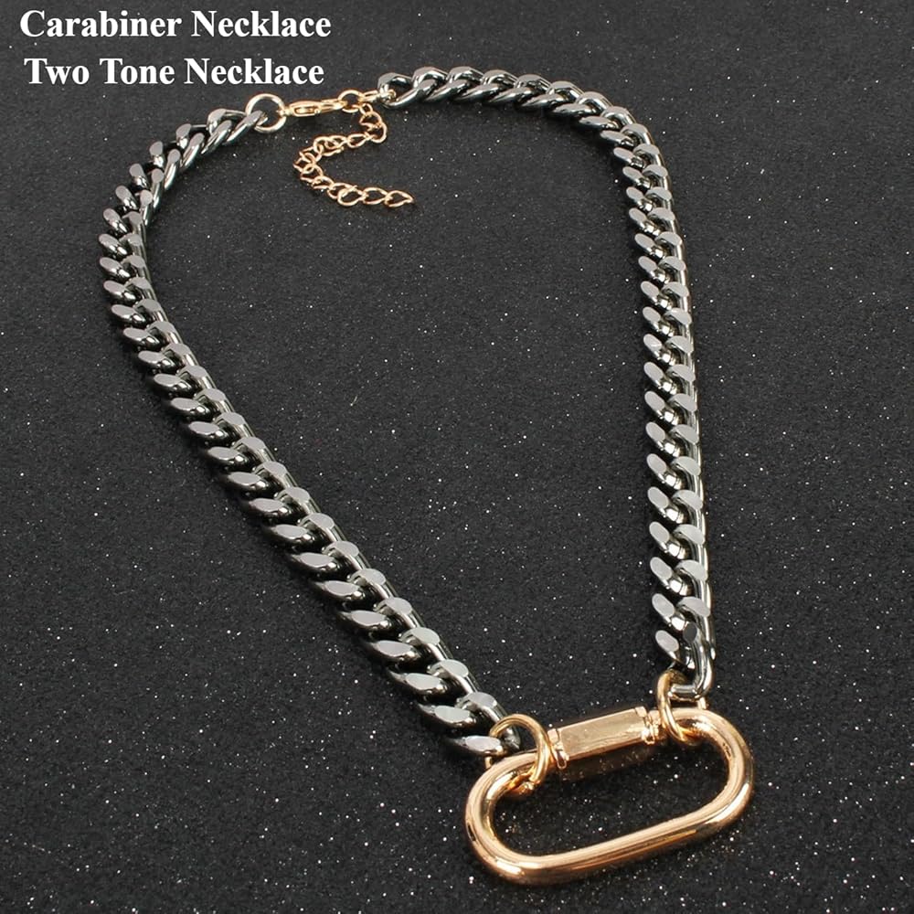 Our Two Tone Necklace, suitable for men and women, is a unique and personalized necklace that will enhance any outfit. Its mountaineering buckle design is perfect for adventurers and outdoor enthusiasts. This Chunky Silver Chain Necklace is a perfect gift for your loved ones who enjoy fashion and outdoor activities.