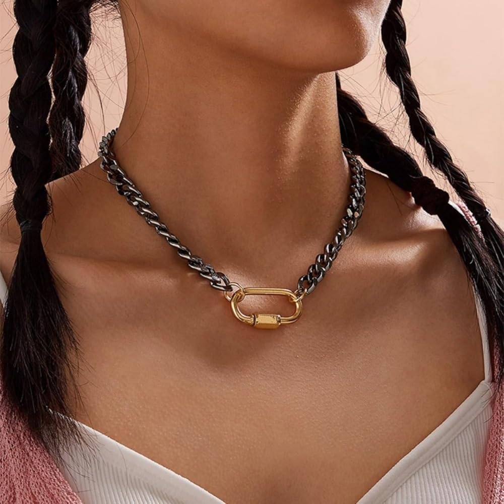 Introducing our stylish and versatile Choker collection! Our Carabiner Necklace is a must-have accessory for both men and women who love to stand out from the crowd. With its two-tone design, this chunky chain necklace is perfect for any occasion.