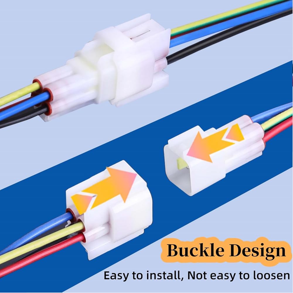 Snap-On Design: يسهل تثبيت موصلات السيارات بتصميم مشبك يستغرق تثبيت ما يصل إلى 30 ثانية لتثبيته ، وبمجرد الجمع بينها ، يتم تثبيتها بإحكام ولن تتراجع أو تسقط.