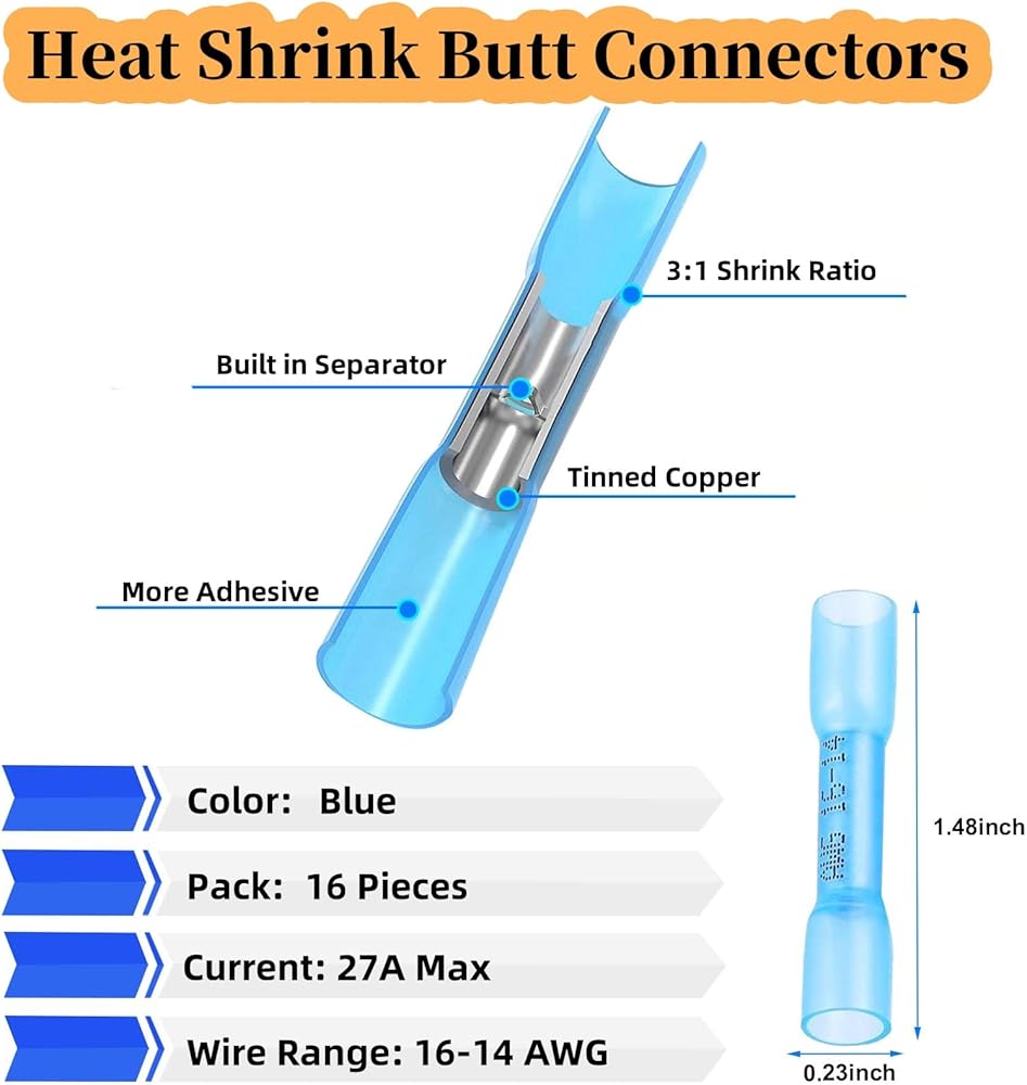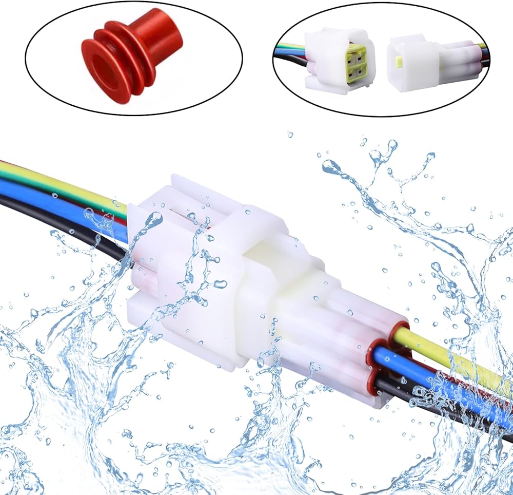 ما ستحصل عليه: تشتمل مجموعة موصل موتوكيدوب الكهربائية المقاومة للماء على 2 حزمة 4 دبوس موصلات من الذكور والإناث مع 7.87 بوصة من أسلاك الكابل و 16 قطعة متدلية بعقب الحرارة (BHT2.0).