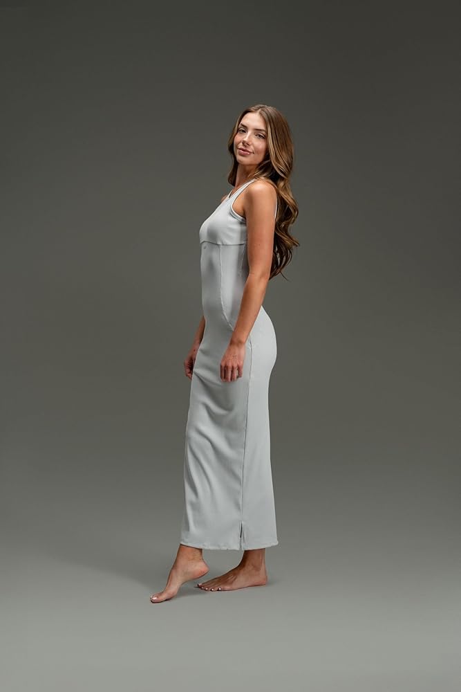 A Must-Have Dress for Effortless Style. Upgrade your wardrobe with our figure-flattering ribbed maxi dress. Designed to accentuate your curves, this long, fitted dress is as comfortable as it is stylish. The classic crew neckline, slight racerback, and soft stretch fabric create a timeless yet modern look that works for any occasion. Whether you're keeping it casual or dressing up, this bodycon maxi dress is your go-to for effortless elegance.